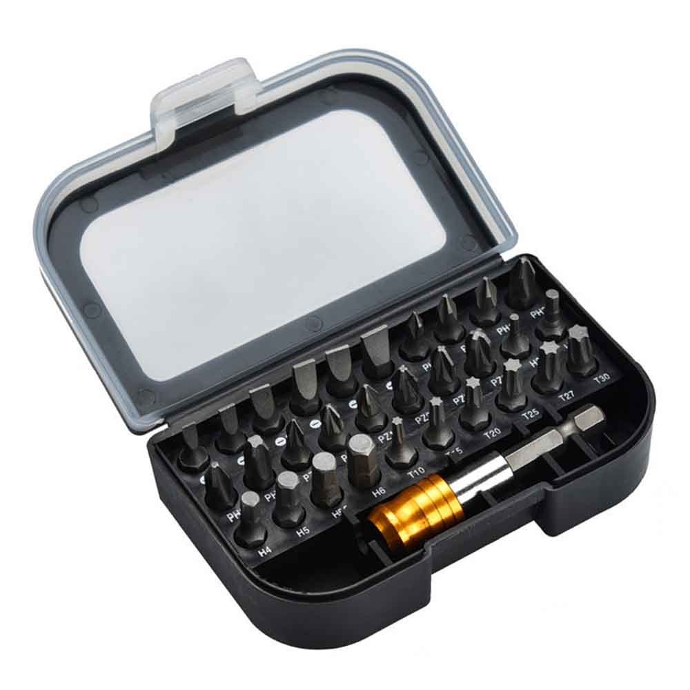 Product Description Feature: *30x most commonly used screwdriver bits(6 Pcs of each cross screwdriver,Slotted, for Torx, Hex, Pozi) with 1x quick release hex chunk extension adapter can fulfill most of need for screw driving in daily life. *Can be used with both power drill/driver and handheld screwdriver. *High quality bits made of Chrome vanadium steel(CRV6150), tough and. *Handy and compact storage case which is convenient to store and carry, can be also clipped on the waist belt. Specifications: Product name: Screwdriver Bits Set Material: Carbon steel Color: Black, Yellow Box Size:(Approx.) 100*60*40mm Model: cross: PH0, PH1*2, PH2*2, PH3 for TORQ head: for T10, for T15, for T20, for T25, T27, for T30 Pozi driver: PZ0, PZ1*2, PZ2*2, PZ3 Hex head: for H2,H3,H4,H5,H5.5 Slotted: 3, 4, 5, 5.5, 6, 7, mm 1pc Hex Magnetic Holder Suitable for: Power drill/driver and handheld screwdriver Quantity: 31Pcs/Set Package Contents: 30 x Screwdriver Bits Set 1 x Hex Magnetic Holder Note: 1. The real color of the item may be slightly different from the pictures shown on website caused by many factors such as brightness of your monitor and light brightness. 2. Please allow slight manual measurement deviation for the data. Payment Payment must be completed within 5 days. If you have any problems about payment, please contact us via ebay message. Delivery details We only ship to confirmed ebay Order addresses. Please comfirm that your Order address is in line with your shipping address. Please kindly note that the c ombined shipping is not provided because the shipping fee is calculated by weight. Also, the each additional item means exactly the the same color and size. It takes about 7 -15 working days to US; about 10-30 working days to other countries. Transit time may be a little delayed because of the bad weather and customs inspection . If you do not receive your item within 30 working days since payment finished, please contact us immediately for further assistance. Contact us We strive for 100% customer satisfaction! Positive Feedback is very important to us. If you have any questions, p lease feel free to contact us via "Ask seller a question" . We will reply your email within 24 working hours.