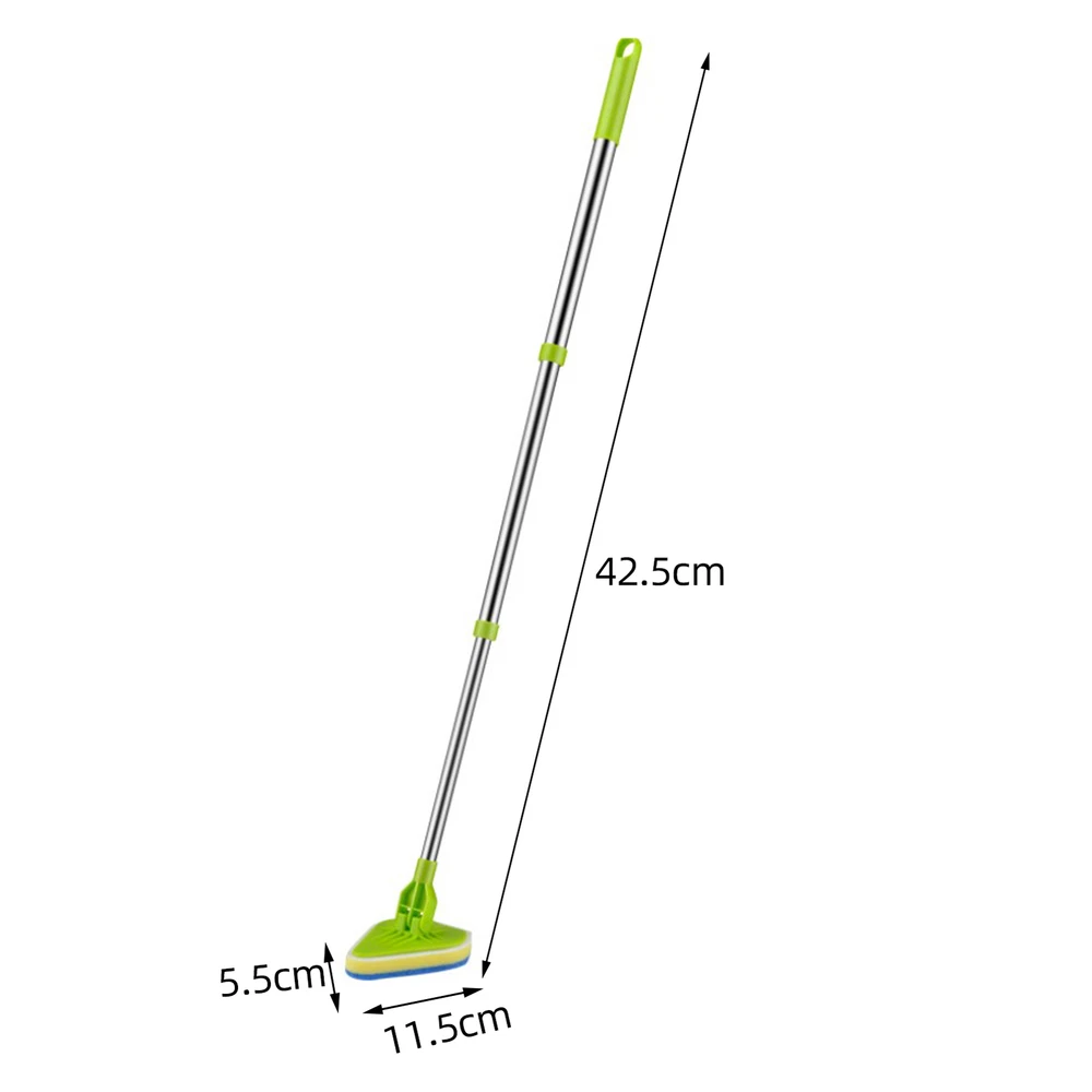With 2 In 1 Design: Each set of shower cleaning brushes is equipped with a long handle and four brush heads, including a brush and three replacement sponges, which can adapt to your different cleaning needs. Rotatable Brush Head: This floor scrubber has a 180°rotating design, which can help you automatically rotate when cleaning corners. You can easily and quickly clean every corner and circular area without squatting down. Retractable Handle: The shower brush for cleaning has an ergonomically strong and durable steel rod, which can extend from 18" to 35", with a non-slip EVA handle and hook design. Replaceable Brush Head: The cleaning brushes are detachable, and the four brush heads can be used individually to meet your various cleaning needs. The hole on the top can help you store the cleaning brush in a closet or on the wall. Widely Application: The wall cleaner with long handle can be applied to many surfaces and fit into corners while the front bristles are shaped to get into corners, recesses and baseboard. Descriptions: We provide 1 bristle and three sponge brushes. Four cleaning brushes can be detached and replaced. The tile scrubber has an ergonomic non-slip EVA handle, which can be extended from 18" to 35".The scrub brush adopts a triangular and 180° rotating brush head design, which is convenient for you to scrub hard-to-reach corners. Features: 1. Removable Bristles: Three replacement sponge brushes can help you clean different places and make your home cleaner. 2. 180°Rotation: The floor scrubber can achieve 180°rotation, which is easier to clean up sanitary dead corners without squatting. 3. Ergonomic Design: The ergonomic alloy handle is easy to grasp, and the non-slip handle helps you better grasp and receive force. 4. Triangular Head: The triangular brush head can help you clean the corners of the kitchen and bathroom. Specifications: Name: Scrub Brush with Long Handle Material: sponge, aluminum alloy, pp, etc. Product Material: about 11.5*5.5*42.5cm/ 4.53*2.16*16.73'' Packing List: Long Handle*1 Brush*1 Sponge Brush*3