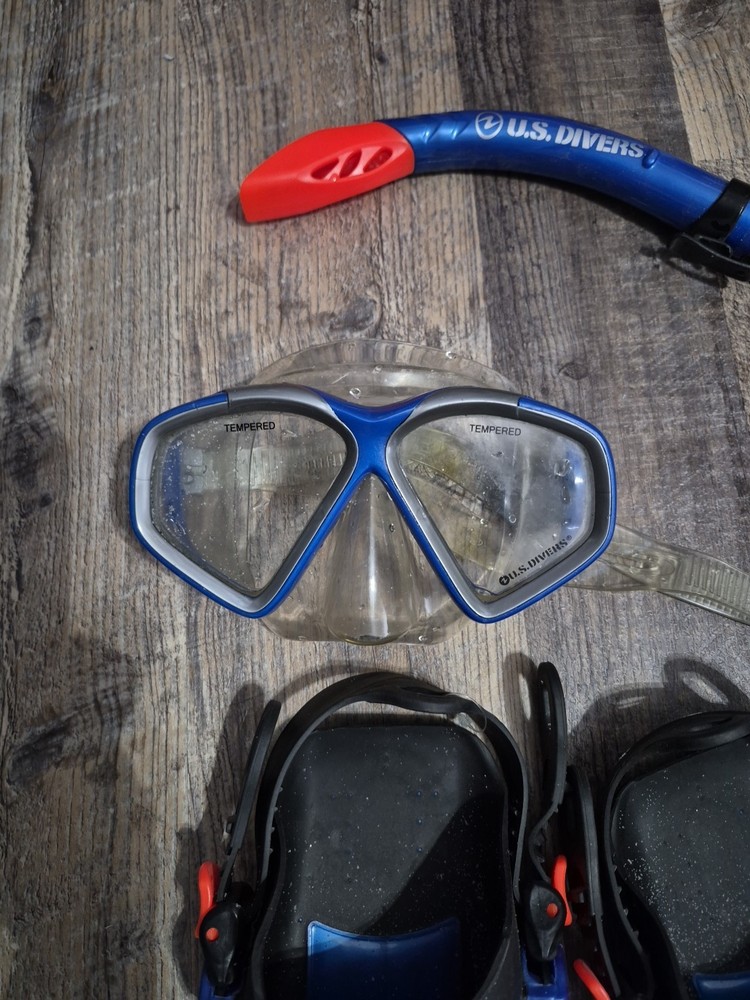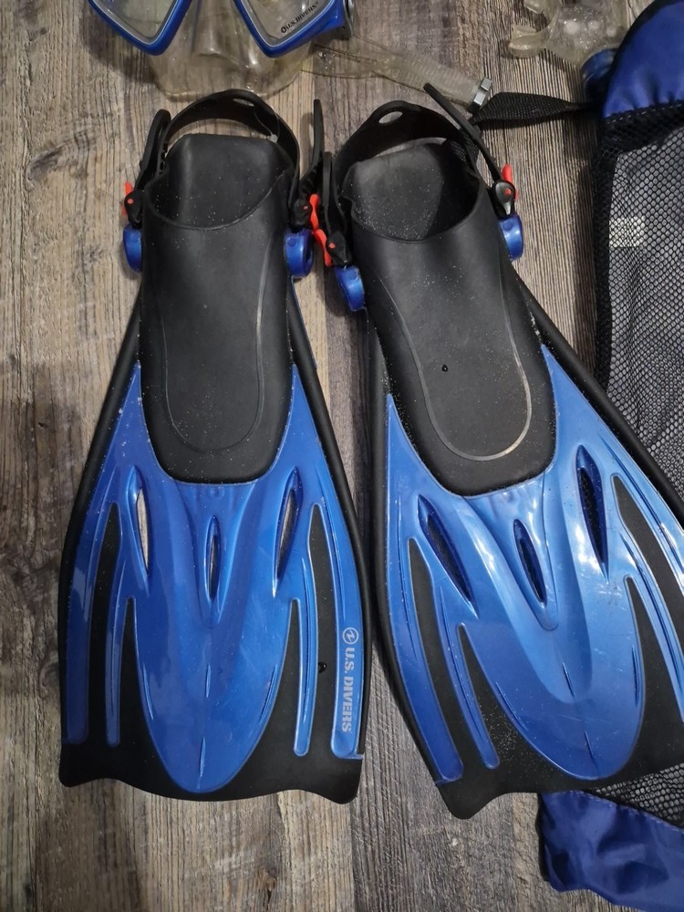 The Scuba U.S. Divers Dive Flippers are a high-quality pair of snorkel goggles designed for adult sizes S/M (US 4.5-8.5). Made by U.S. Divers, these flippers come with a convenient bag for easy transportation and storage. The flippers are durable and perfect for water sports enthusiasts looking to explore the underwater world. With a sleek design and a comfortable fit, these dive flippers are a must-have for any scuba or snorkeling adventure. These were acquired second hand so I do not have a bunch of information on them. Clear signs of use as these have sand debris. I have rinsed the pueces but Please sanitize the mouth and face pieces prior to use.