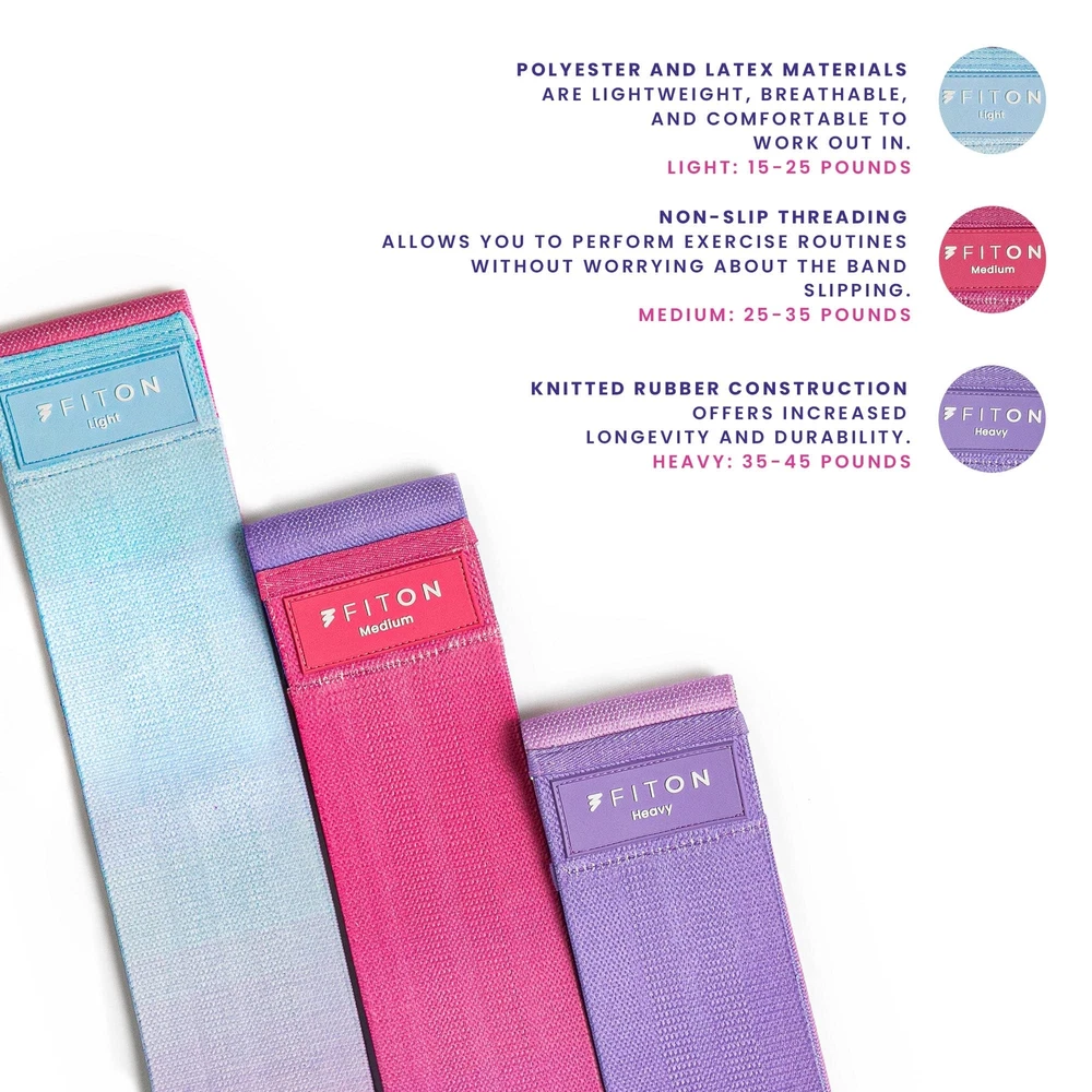 Sculpt Resistance Bands for Working Out prove that style and comfort can go hand in hand. A union of performance and beauty, these leg resistance bands feature a multi-colored gradient design that will motivate and push you to keep going in transforming your legs and glutes. Made from polyester and latex, each workout band with knitted rubber construction will not slide from your hips or legs because of its non-slip threading. We provide a mesh pouch for these bands. You could take hips and glute bands on the go. Use it to get the perfect stretch anytime, anywhere. You get 3 bands of different colors, each for a specific intensity level of workout. This pack provides Light (15-25lbs), Medium (25-35 pounds), and Heavy (35-45 pounds) leg bands, giving you more flexibility and options to achieve your fitness goals. WORKOUT IN STYLE AND COMFORT: Sculpt Resistance Bands workout tools prove style and comfort can go hand in hand. A union of performance and beauty, our hip resistance bands feature a multi-colored gradient design that will motivate and push you to keep going in transforming your leg and glutes. You can also use them for the arms and abdomen. MADE TO LAST: We designed and crafted our workout bands for women and men with durability in mind. Made from polyester and latex, each loop band with knitted rubber construction will not slide from your hips or legs because of its non-slip threading. This is a quality flexibility band to add to your home fitness routine. FREE APP TO EXERCISE ANYWHERE: Looking for non slip resistance bands for a home workout that you can also bring to the park or a gym? We provide a mesh pouch for these bands - so you can take our womens glute and hip band whenever you need it. Plus, we include free access to our app with all of our products as a companion to your workouts. Have on-the-go access to an amazing health and wellness platform you'll love! Get that needed stretch anytime, anywhere! FOR ANY LEVEL OF WORKOUT: You get three (3) bands of different colors, each for a specific intensity level of workout. This pack provides light (15-25lbs), medium (25-35 pounds), and heavy (35-45 pounds) leg bands, giving you more flexibility and options to achieve your fitness goals. FITNESS ACCESSORIES WITHOUT THE GUESSWORK: At , our goal is to provide you with premium, fashionable accessories like noslip resistant home fitness bands for work out at a terrific value. We take care of the guesswork in selecting quality, convenient fitness accessories, so you'll be more inspired to pursue an active lifestyle from anywhere.