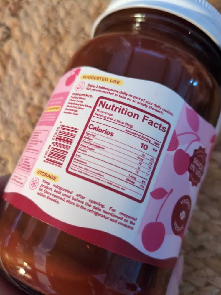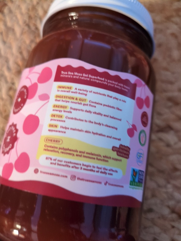 Serving Recommendation:2 TbspAdministration:OralFormulation:Gel, Does not applySize:16 Fl Oz (Pack Of 1)Ingredients:CherryItem Form:GelExpiration Date:8/2026Product Expiration Type:Expiration On PackagePackage Dimensions LxWxH:6.3x4.76x4.25 InchesISBN:5061033691264Country of Origin:United StatesVolume:16 fl ozFc Shelf Life:365.0Weight:1.7 PoundsDepartment:UnisexFlavor:CherryColor:CherryUnit Count:16.0gtin13:5061033691264Type:Does not applyUPC:Does not applyEAN:5061033691264Brand:true sea mossFeatures:NaturalWhen to Take:After Meal, Before MealType of Diet:VeganItem Package Quantity:1