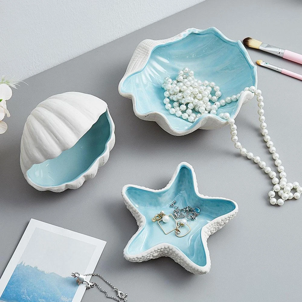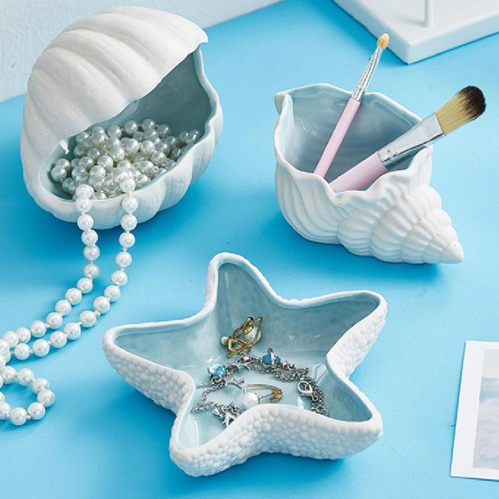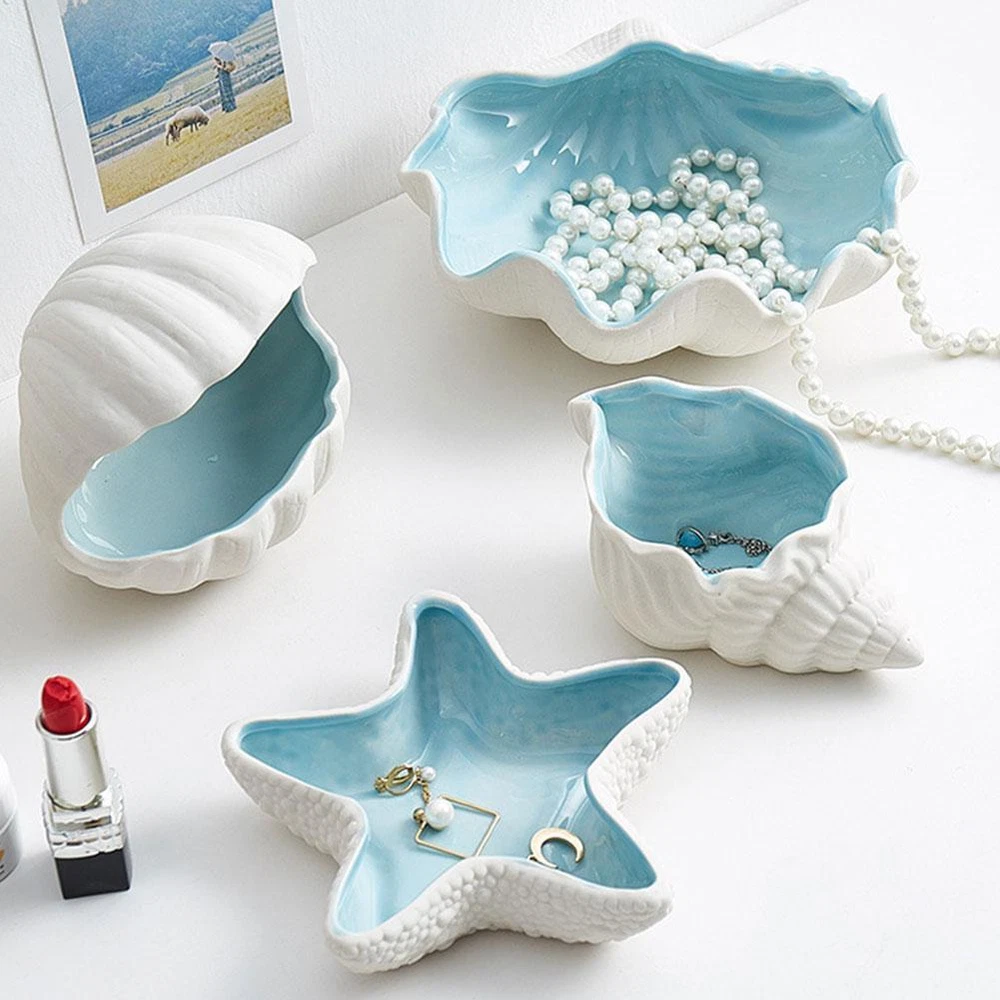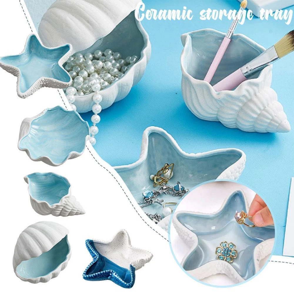 Sea Star Shell Ceramic Storage Tray Necklace Rings Jewelry Desktop Storage Box