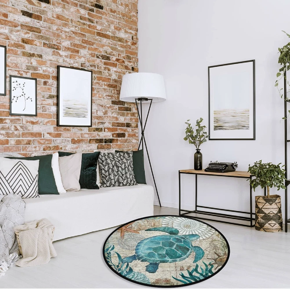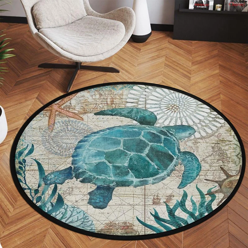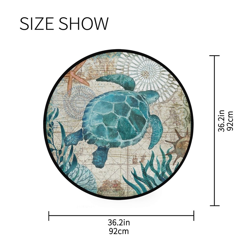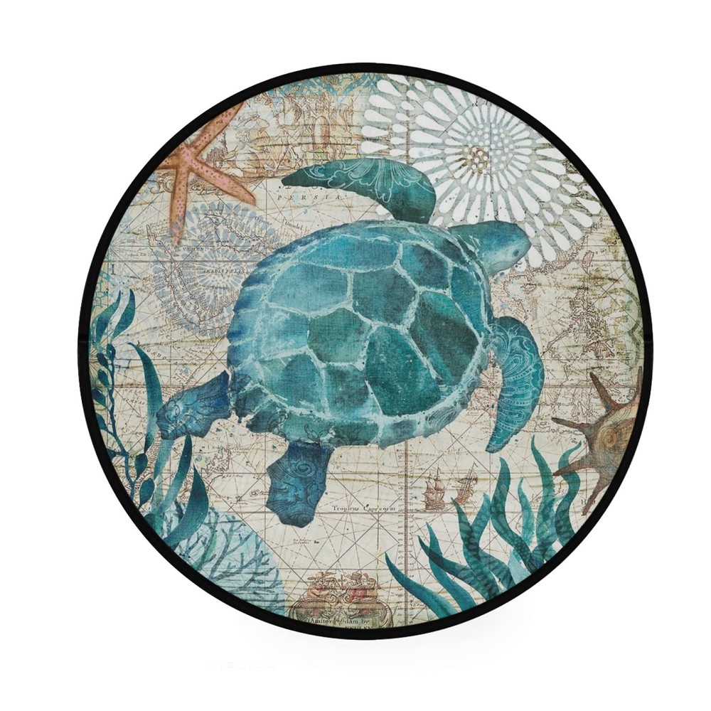 Sea Turtle Starfish Pattern Non-Slip Round Doormat Floor Rug