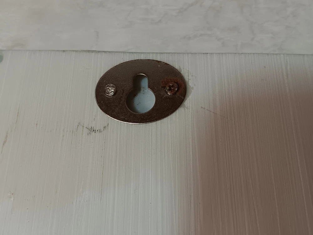On the back of one of the pieces is rust around the screw of the hanging mechanism. Still functions! Approx Dimensions: Height: 6.25" Width 4.5" Thick: less than a cm