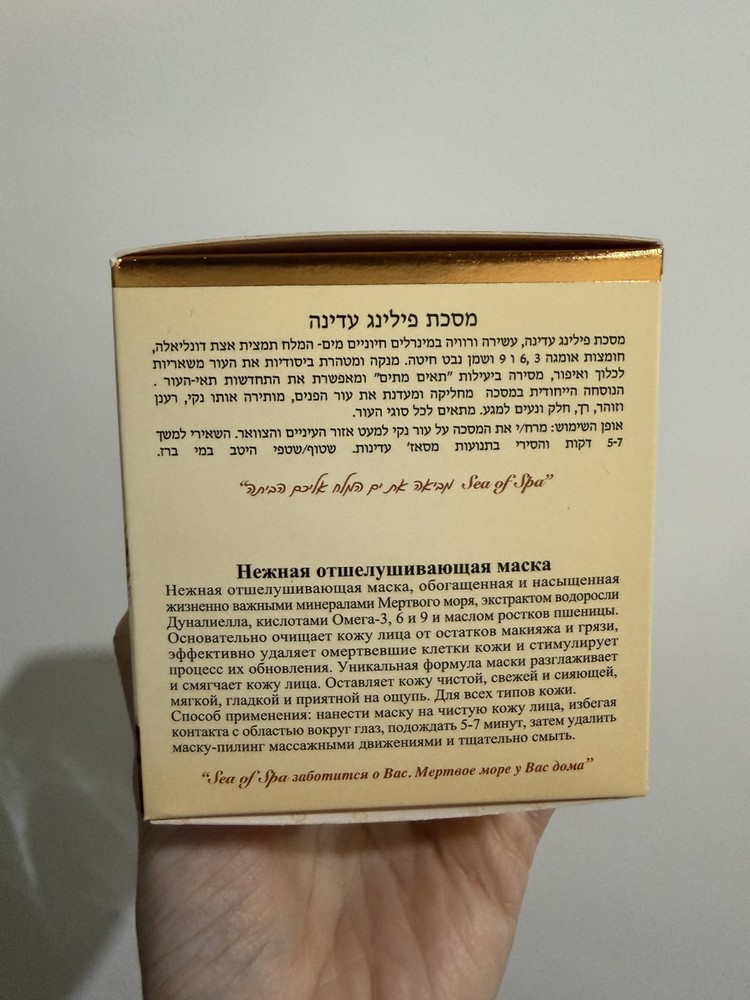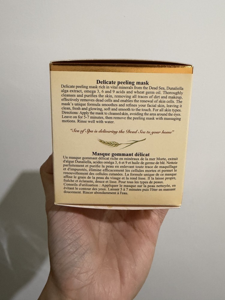 EXP: 8/2027 Delicate peeling mask rich in vital minerals from the Dead Sea, Dunaliella Algae extract, Omega-3, 6 and 9 acids and wheat germ oil. For All Skin Types. Size: 50ml / 1.7 Fl. Oz. Made in Israel. Paraben Free. Thoroughly cleanses and purifies the skin, removes the traces of dirt and makeup, effectively removes dead cells and enables the renewal of skin cells. The mask's unique formula smoothes and refines your facial skin, leaving it clean, fresh and glowing, soft and smooth to the touch. For all skin types. Directions for use: Apply mask to clean skin, avoiding the area around the eyes, leave it for 5-7 minutes, then remove the mask with the massaging movements. Thoroughly rinse with water. Licensed by the Israeli Ministry of Health.