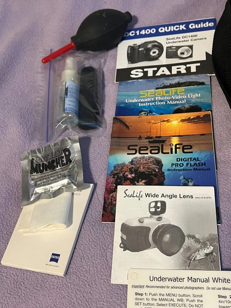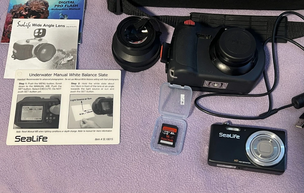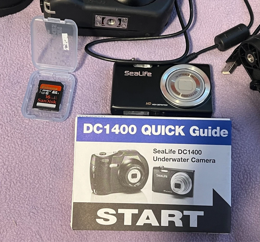 SeaLife DC1400 Underwater Camera~Wide Angle Lens, Flash, Light & More in Case This underwater camera and accessories are from my dad's estate. He only used it a handful of times, and it has been stored away since. Sadly, he isn't able to dive anymore. We are using funds to remodel his home. INCLUDES: SeaLife 1400 Underwater Camera w/ Protective Housing with Accessories all in Convenient Travel Case Digital Pro Flash Photo-Video Light Wide Angle Lens Cleaning Tools USB Charger 16G Scan Disk Extreme Original Manuals GREAT DEAL WITH ALL THE ACCESSORIES! Please see all pictures to ensure a happy purchase. If you have any questions, please don’t hesitate to reach out. When pricing items, we always consider shipping costs, but fair offers will also be considered. If interested, please send reasonable offers! Thank you for viewing my item! Check out the others items I have listed. I can offer COMBINED SHIPPING if you find something else you would like. FYI - My husband and I retired from education with 40+ years of service combined. We are down-sizing and going through storage and also visiting local estate sales & resale shops, as we try to supplement our pension. We are having lots of fun finding treasures like these!