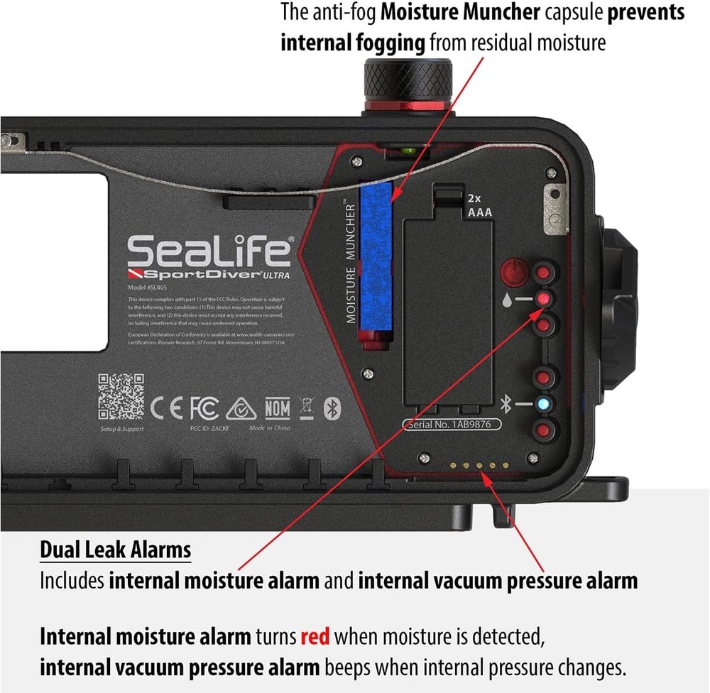New from SeaLife, now with a larger front lens element for compatibility with even more smartphones! style="border: 5px solid red;" Toggle navigation About Us Contact Us Serving SCUBA divers worldwide since 1974! We are Northern California’s largest dive center featuring premier scuba gear for both online and instore purchase. We carry the most popular brands of scuba equipment, snorkeling gear and swim gear. Visit our store SeaLife SportDiver ULTRA Pro 2500 Underwater Smartphone Housing & Light Set SKU: PH_SL406 Retail Price: 749.95 Description: SAFE & SECURE – The larger SportDiver ULTRA case for most Android models and iPhone 8 & up is waterproof for dives down to 130 feet using its cam-lock sealing mechanism. The interior tension spring and rubber grip tabs hold your phone in place while adding shock protection. Should you not seal the case correctly the newly designed AUDIBLE & VISUAL MOISTURE & PRESSURE sensors will quickly notify you. New lens port orientation accommodates more phones and lenses. The anti-fog Moisture Muncher capsule prevents internal fogging from residual moisture SEE COLORS AS THEY REALLY ARE – When using the included 2500 lumen Light from the Sea Dragon 2500F Underwater Photo & Video Light or the included filter on the SportDiver ULTRA case your images will turn out like those of a professional underwater photographer. The COB LED technology with a Color Rendering Index of 90 closely mimics natural sunlight or use the filter on the case to restore natural light so all you see are the vivid colors as they truly appear in nature. No more washed out blue pictures EASY ACCESS AND SIMPLE TO USE – The camera controls are no different than the normal way you take pictures and you have access to all your popular camera controls settings including Zoom, Focus, White Balance, Tint, Lens selection, and more while easily switching between photos and video. The housing now offers 7 mounting points to lights and trays and mounts easily to the Flex-Connect Tray and features a large shutter lever for easy picture taking with gloved or bare hands while the Flex-Connect Grip below the light adds stability and balance INDIVIDUALLY TESTED – Your phone is invaluable with your pictures, music, messages, & emails and this is why we test every case before it is packaged. We also know things get lost and include extra rubber grip tabs, spare O rings for the housing and Vacuum Check Port, O-ring lubricant & removal tool, an additional Moisture Muncher Capsule, Travel Case, Deluxe Wrist Strap and two AAA batteries LONG LASTING & BRIGHT – The 2500 lumen light & 120 degree beam angle brighten up the darkest scenes. At the highest power setting the rechargeable lithium battery lasts up to one hour on a single charge, two hours at half power & up four hours at quarter power. The phone housing uses 2 AAA batteries providing long lasting power up to 50 hours of continuous use. About Us Serving SCUBA divers since 1974 and located in Sacramento California. Dolphin Scuba Center is Northern California’s largest SSI Diamond Pro Development Center with more then 30 Instructors on staff. Dolphin has been providing scuba instruction for over 50 years. Dolphin features premier dive gear for both in-store and online purchases. “Come Experience the Dolphin Difference” Return Policy Dolphin Scuba guarantees all workmanship and supports all manufacturers' warranties. Exchanges, store credits and refunds excluding shipping gladly given within 30 days. Dolphin Scuba guarantees wall workmanship and supports all manufacturers warranties. A return authorization number is necessary and we do prefer you to download, completely fill out and send your order back with our RMA form. Please click here. This helps us quickly and efficiently complete your return as soon as it possible. Some orders may warrant a 10% restocking fee unless otherwise stated. Payment Policy At Dolphin, we take pride in the fact that most purchases ship from the United States within 24 hours after payment is received. We offer expedited shipping options if you need your purchase earlier than standard delivery times allow. Your order will be shipped via USPS or UPS. A tracking number will be emailed to you when your order is boxed and ready for pickup; however, tracking information will not be available for viewing until the package has been picked up and registered by your shipping carrier. Please be sure to check your spam folder for notifications prior to contacting us. Import duties, etc. are not included in the item price or shipping cost. These charges are the buyer's responsibility. Please check with your country's customs office to determine what these additional costs will be prior to bidding or buying. Due to new legislation, Sales Tax will be collected in California, Massachusetts, Georgia, and Hawaii for our eBay store. Shipping Policy An invoice will be sent automatically to your email for each transaction you complete. Payment must be completed within seven days of the date of the invoice. If you encounter difficulties completing the payment process, please contact us via telephone or eBay messages. We accept PayPal and all of the major credit cards such as Visa, MasterCard, American Express, Discover and Echecks. If you prefer to pay with credit card you must send us a message to arrange payment. To ensure delivery of all orders, we only ship to an address that is verified and registered with your form of payment. | About Us | Contact Us |