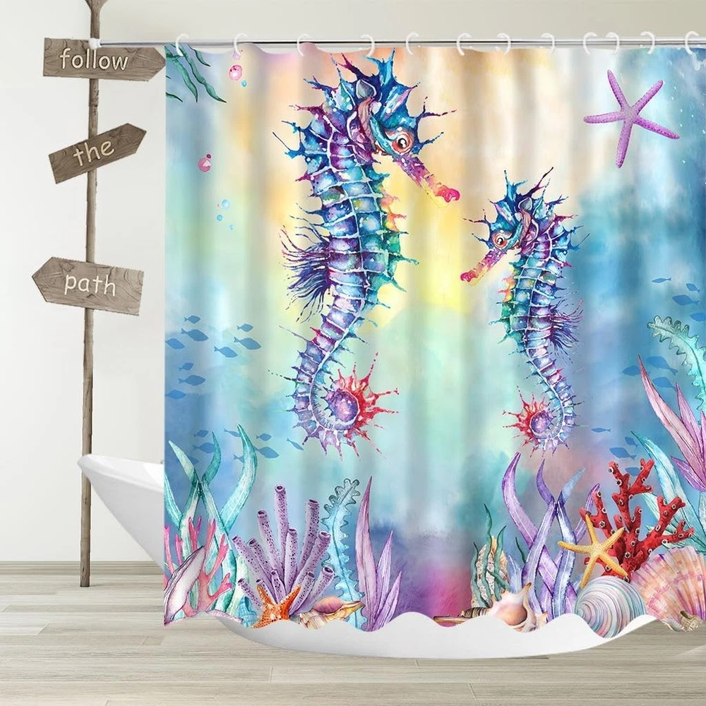 Free eBay listing template designed by dewiso.com YUYASM Seahorse Shower Curtain Nautical Ocean Beach Theme Watercolor Underwater Starfish Seashell Coral Seaweed Colorful Tropical Marine Decor Fabric Bath Curtains for Bathroom 70x70 Inch FREE AND FAST SHIPPING! About this item 1.Material:Polyester fabric bathroom curtains with reinforced metal hole, non vinyl, non PEVA.Shower curtain liner is optional. 2.Standard size: 60" Wx70" L(150cmx180cm),70" Wx70" L(180cmx180cm),70" Wx78" L (180cmx200cm) 3.Machine washable - no fading,retains original color after wash. 4.Bathroom decor - the shower curtain perfectly decorate your bathroom,living room, bedroom, party or some where as you like. 5.Simple Installation.If you have any problems,please feel free to contact with us. Product We offer a 30-Day Return Policy on items which you are not completely satisfied with. You have the option for a full-refund or an exchange of the item. No returns are available on items shipped outside of the US . Shipping We offer Free Shipping to the US and ship within 2 business days of payment, usually sooner. We use UPS express shipping. That's why your products are usually delivered within 3 days . Contact We try our very best to make sure every customer is completely satisfied. If there's a problem , message us! We're happy to help. 24/7 live chat available.