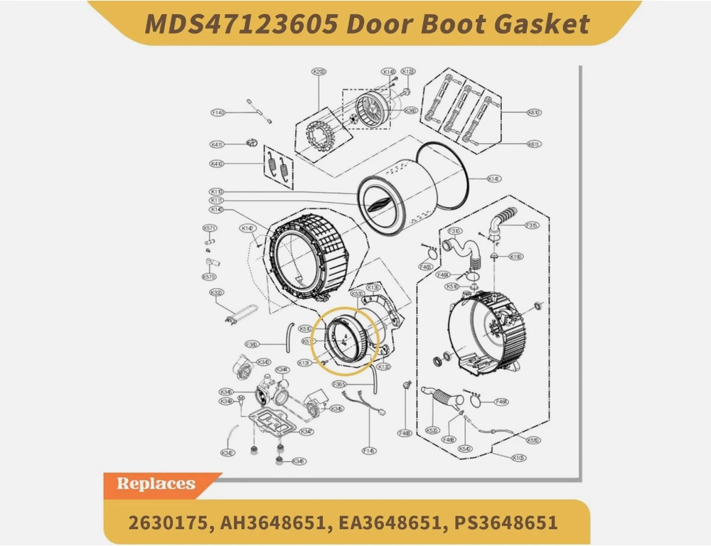 SealPro Washer Door Gasket For LG MDS47123618 AP6236841 PS12081605 1 YR WARRANTY π« Shipping Restrictions: We do NOT ship to: Puerto Rico, Hawaii, Alaska, Guam. No shipping on weekends β Orders placed on weekends will be processed on the next business day. Same-day shipping available for express orders. π¦ Product Details: Compatible Brand: LG Part Number: MDS47123618 (also known as AP6236841) Replaces: 4511797, AGF78449808