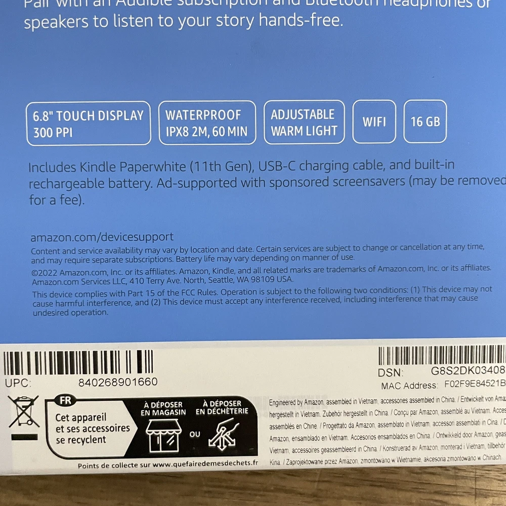 Sealed Amazon Kindle Paperwhite Wifi 6.8" display 16GB Black