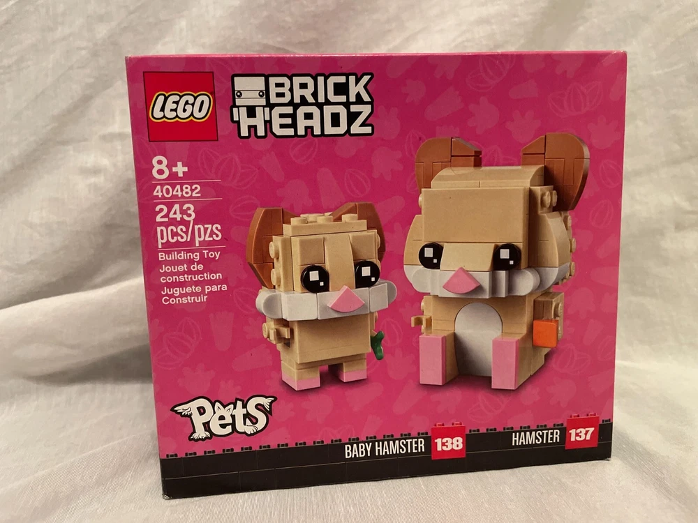 The product is a collection of sealed LEGO Brick Headz sets featuring various themes such as animals, movies, ninjas, and princesses. Each set is designed for builders aged 10 and up, made from a combination of cardboard and plastic materials. Some of the sets are retired, making them collectible items for LEGO enthusiasts. These Brick Headz sets offer a fun and creative building experience for fans of LEGO and different interests. Some of the LEGO sets have minor dents and creases in their boxes.