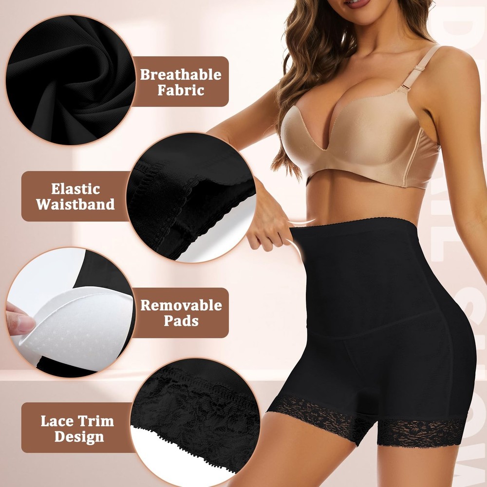 Womens Butt Lifter Panties Padded Underwear Seamless Hip Enhancer Shapewear Boyshorts Butt Lifting Panties This butt lifter panties will give you the curves you want. Your butts will look sexier and bigger than ever before, get this booty lifting shorts to experience the amazing difference. You deserve to be more beautiful,sexier and stunningt! Size Details: Please measure your waist and hip size before ordering. Material: 87% Polyester, 13% Spandex ✔Padded Butt Lifter Panties -- Women booty butt pads panties will helps tighten and lift up your hips in a natural way, enhancing and shape your buttock, make your booty look round fuller, bigger and sexier. This butt pads for bigger butt will definitely give you a charming hourglass figure. ✔Removable Pads Design-- Padded underwear for women with 2 removable pads design,fit inside individual pockets,stay in place firmly. Correspond with the characteristics of the body, creating a attractive line of your hip curve.Butt lifting shapewear with comfortable fit and will shape your buttock,create a natural looking butt curves. ✔Lace Trim& Elastic waistband -- Butt enhancer underwear with beautiful lace trim edge,soft and sexy underneath any type of clothing. Hip enhancer pads for women made of quality Polyester and Spandex material. skin-friendly, breathable and comfortable enough to be worn all day long. Wide elastic waistband of hip enhancer panties can keep in place without rolling down. ✔Suitable for All Occasion -- Butt pads for women for those who have flat hips, small hips and post partum belly, muffin tops, it will help redefine the beauty,make you look more confident and sexy on any occasion,perfect for wedding, club, party, dating and daily. ✔Padded butt enhancer underwear can shape a charming figure, especially with the lace around the hem, it also have a good effect of thigh slimmer,prevent thigh chaffing. Wear it under any type of clothes, shorts, skirts, pants, dresses.