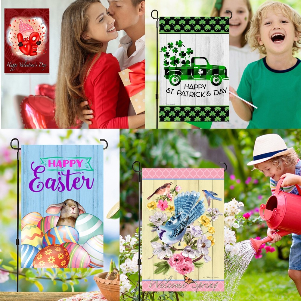 Powered by Frooition brucemichael1498 Seasonal Garden Flags (Set of 12) 12x18 Inch Double Sided & Wind Clip, Stopper Item Description PERFECT GARDEN : Having a pretty garden you can enjoy year long starts with great designs from local artist Bruce Michael. His painted designs have been popular in the flag retail market. These beautiful designs can bring joy to your home and garden year round. Have the perfect garden with our flag seasonal pack! 12 FLAGS INCLUDED: This holiday yard flag assortment was designed by local artist Bruce Michael to celebrate any season with 12 different flags that include St. Patrick's Day, Happy Easter, Summertime, Independence Day, Halloween, Thanksgiving Day, Merry Christmas and Valentine's Day, Hello Spring, Hello Autumn. PREMIUM-QUALITY FLAGS: The great part is how bright and vibrant our outdoor seasonal flags designs are for every flag. You now can enjoy your garden decorations and add some bright color to make your home or garden stand out for every season and holiday. NO CHEAP CLIPART: You can feel happy that these designs are hand painted in the USA. Each painting was created with a little love for a more unique flag that shines in your home. More Items! View more great items Garden Flags Set of 10 12x18 Double Sided Fall Yard Flags with Wind Clip Stopper $21.99 Garden Flags Set of 10 12x18 Inch Double Sided Yard Flags Seasons Holidays $22.99 Welcome Summer Beach House Flag 28" x 40" Double Sided $15.99 Garden Flags Set of 10 12x18 Inch Garden Flag Stand Double Sided Wind Clip $28.87 Listed by Frooition Frooition | No-js Template | eBay design, eBay store design, eBay shop design, eBay template design, eBay listing design, eBay Listing Tool (ver:froo_no_js)