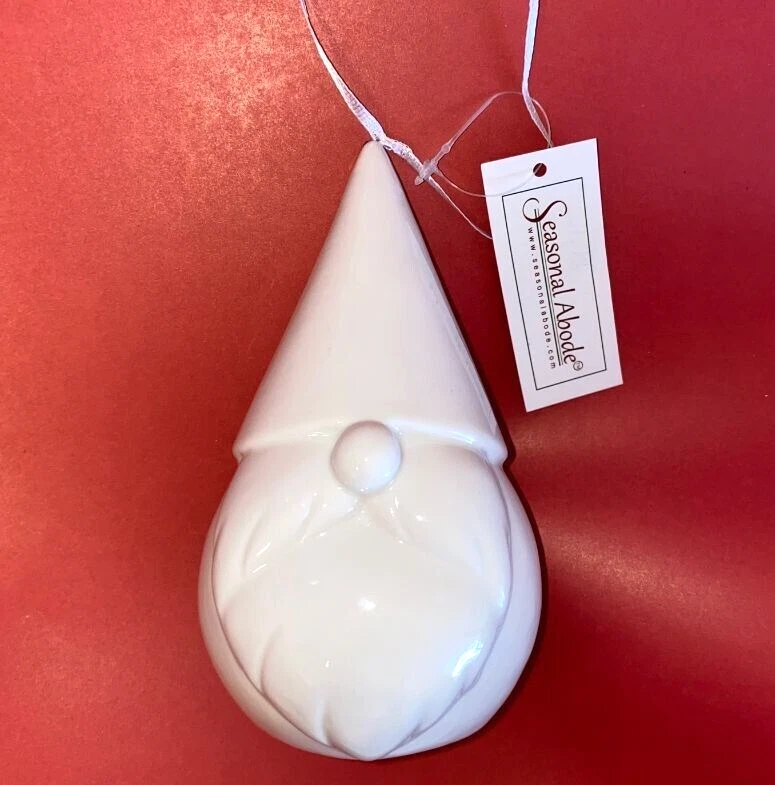 New with tags Seasonal Abode classic large size Christmas white chubby gnome decor ornament or table decoration. Porcelain. 6" Matching tall and smaller size gnome ornaments are available in our eBay store. 73135-139 Bin 2 722196-722197