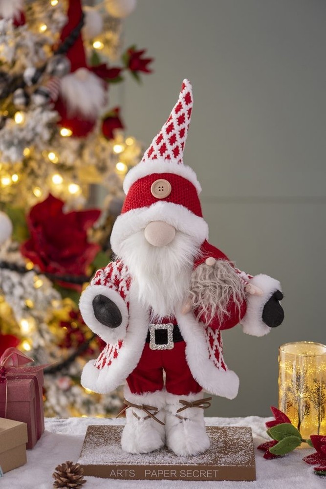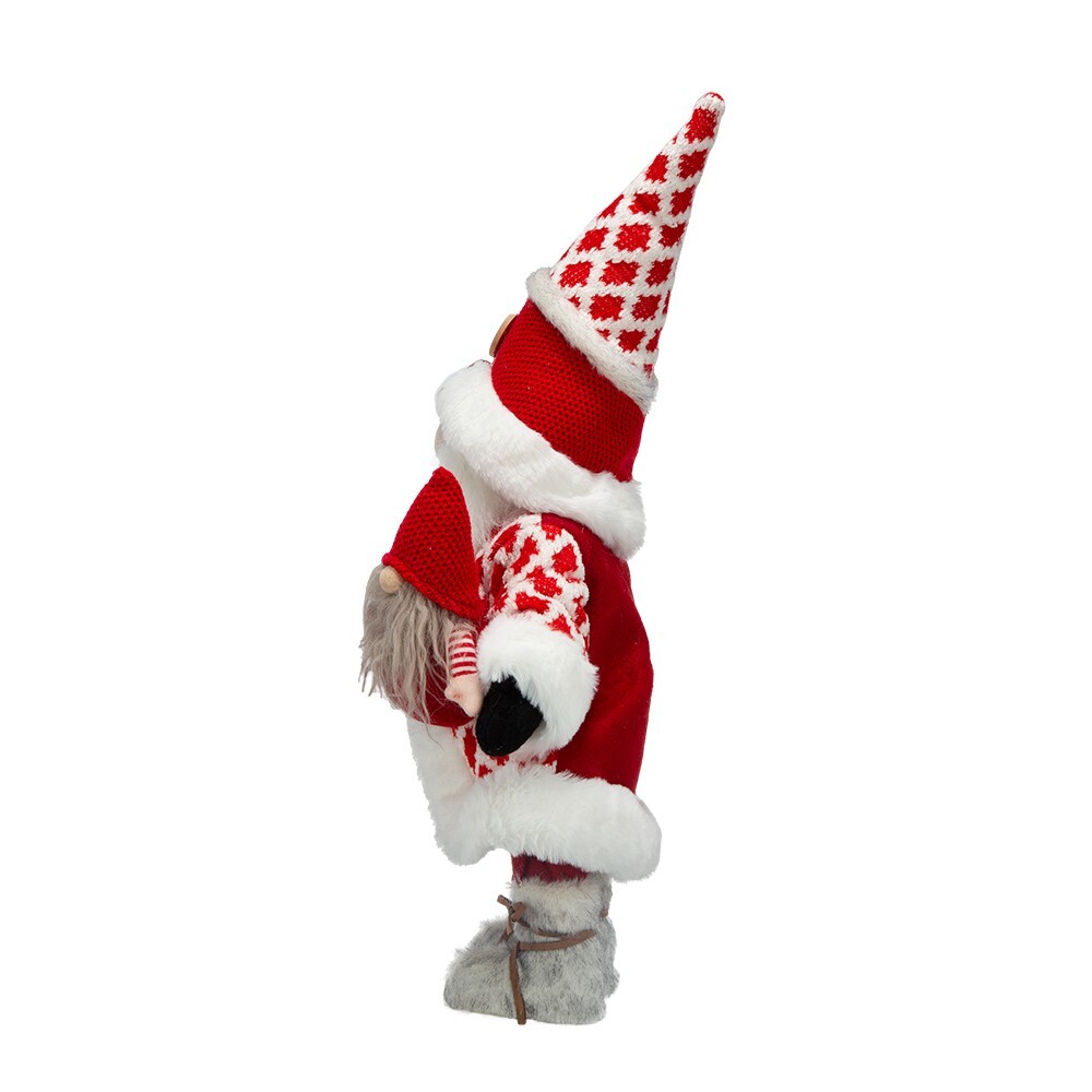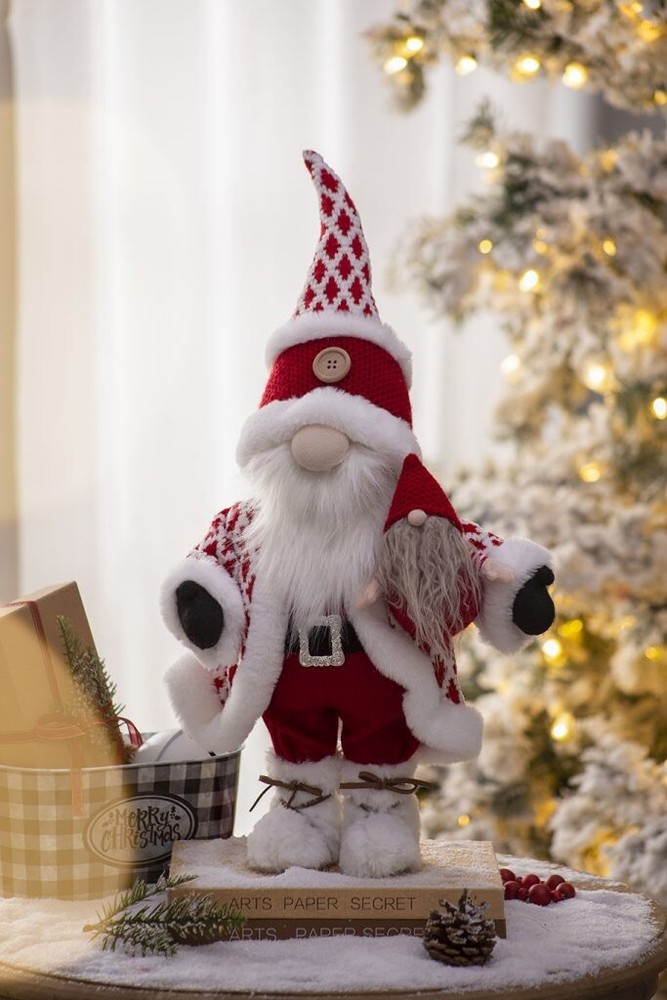 Item Width: 10 in Brand: Seasonal Abode UPC: Does Not Apply Set Includes: Decorations Item Height: 20 in Room: Any Room, Bathroom, Bedroom, Cloakroom, Den, Dining Room, Entryway, Foyer, Guestroom, Kitchen, Living Room, Lounge, Office, Study Size: Large Theme: Santa, Christmas, Seasonal Style: Traditional Shape: Gnome Mounting: Free Standing Department: Adult Occasion: Christmas Material: Fabric Type: Santa Character Family: Santa Claus gtin13: Does Not Apply Character: Gnome Number of Items: 1 MPN: 12656 Color: Red
