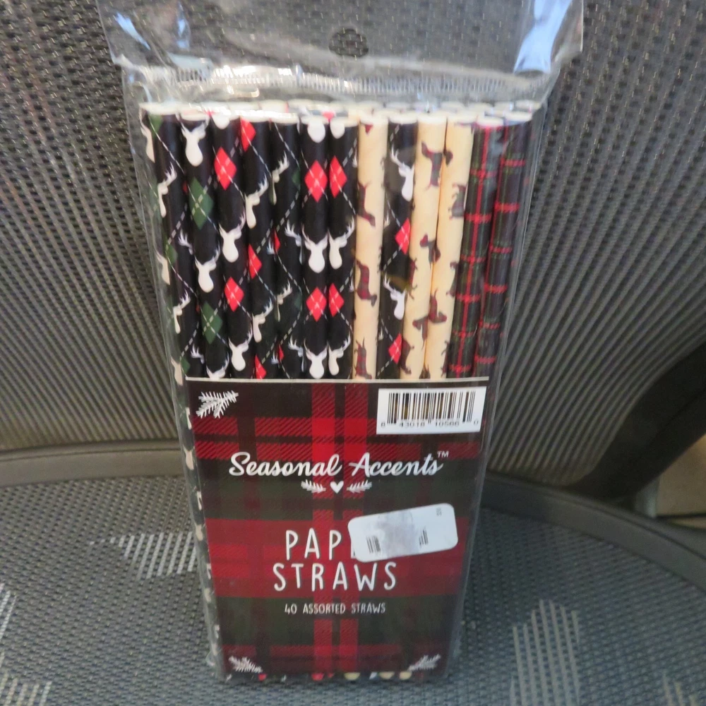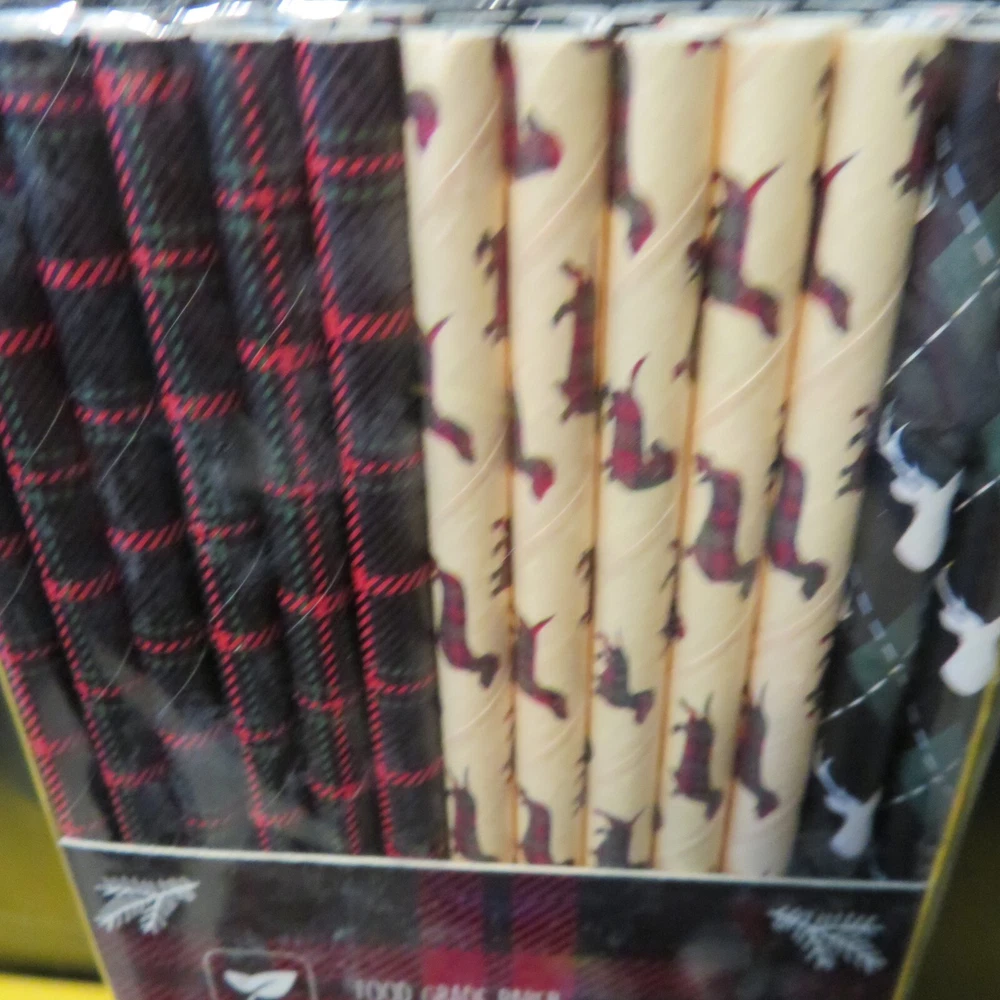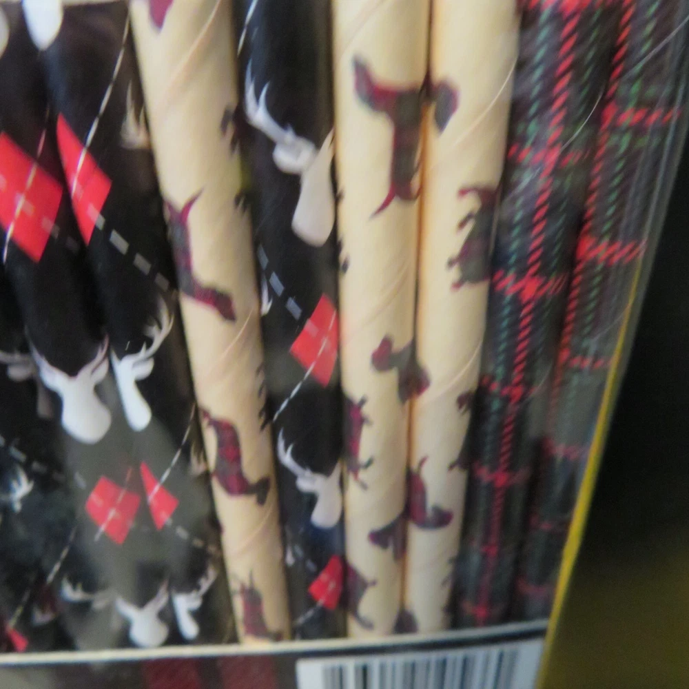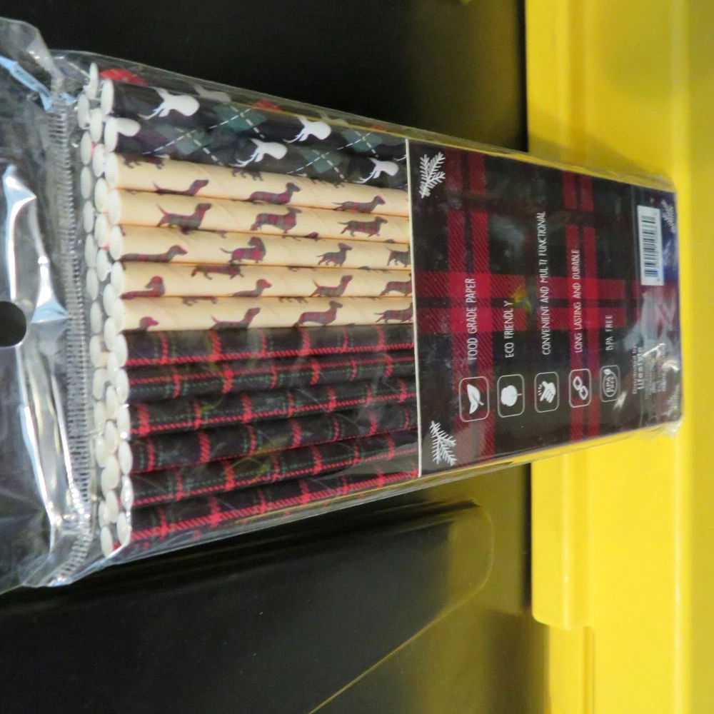 Seasonal Accents 40 Assorted Paper Straws - Dachshund Dog ~ Plaid ~ Deer Stags Food Grade Paper Eco Friendly Long lasting and durable BPA Free NEW