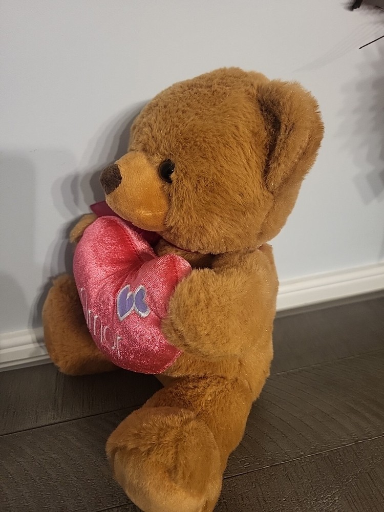 Seasonal Brown Teddy Bear with Pink Heart Amor Ribbon Bow 9 Inch Soft Plush