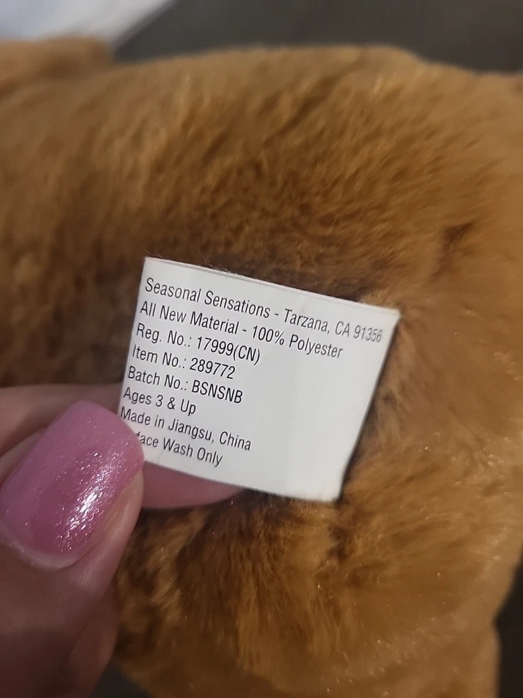Size: Small (6-14 in) Age Level: 4-7, 8-11 Years, 12-16 Years, 17 Years & Up Color: Brown gtin13: Does not apply Brand: Seasonal Sensations Country/Region of Manufacture: China Animal: Teddy Bear Type: Stuffed Animal UPC: Does not apply