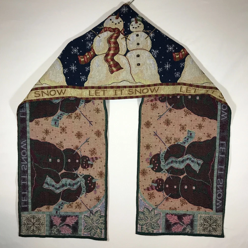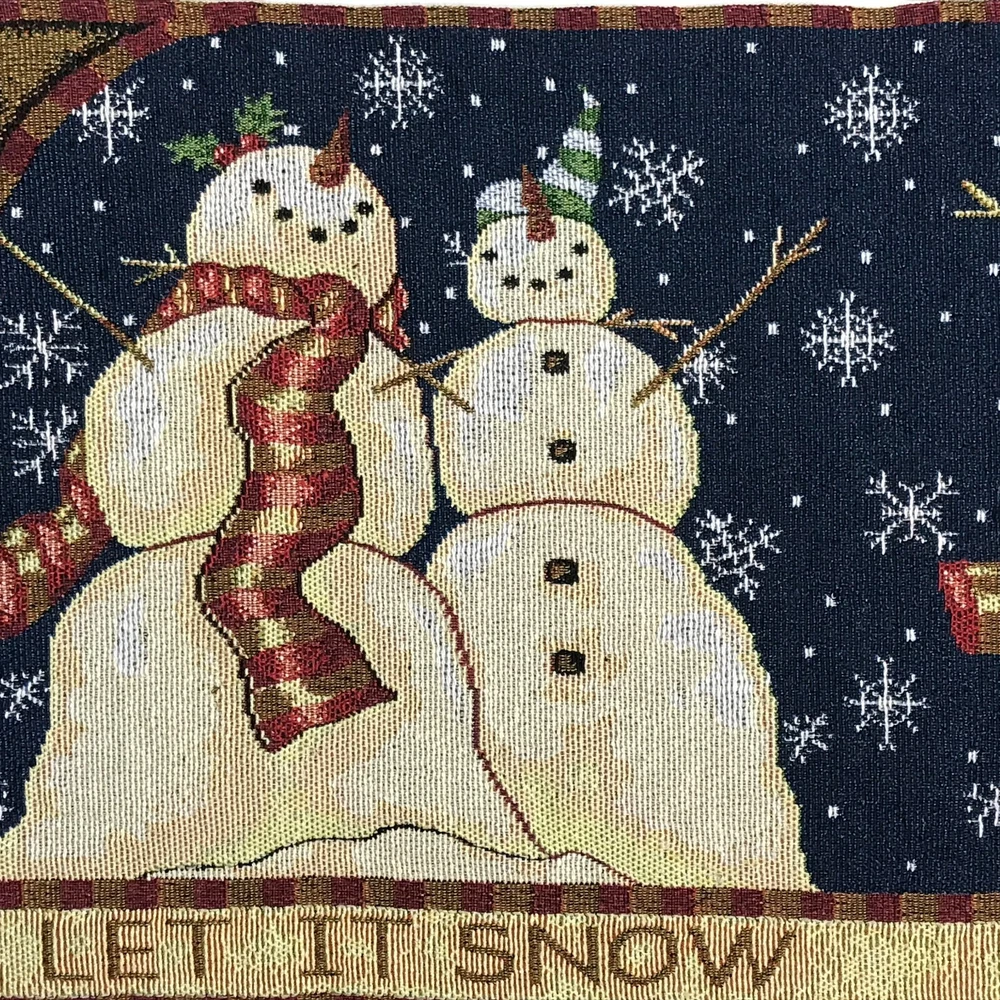 Vintage Seasonal Christmas Snowmen "Let It Snow" Tapestry Table Runner Size: 72" X 13"