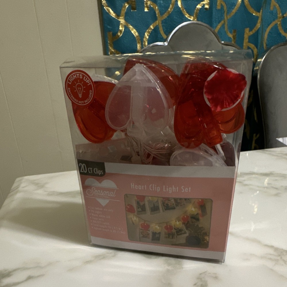 Seasonal Collection Heart Clip LED Garland 20 Lights Red Clear Battery Indoor