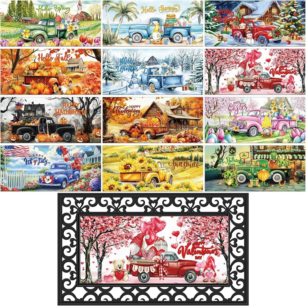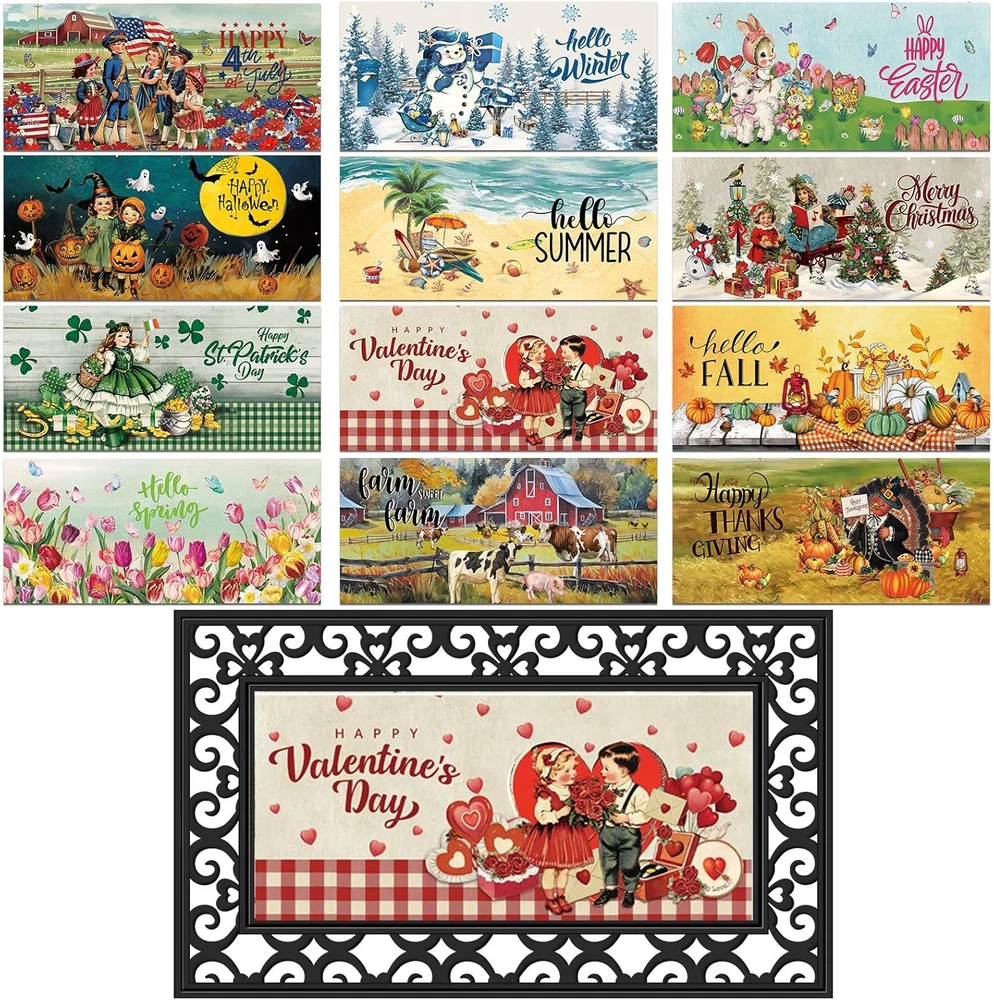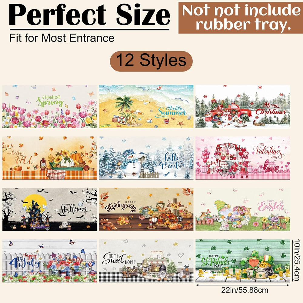 Store New Arrivals Add to Favorite View Feedback Contact Seasonal Door Mat Interchangeable Doormat Inserts Entrance Welcome Mats 22 X 10 Inches Non Slip Mats Gifts for Front Door Valentine'S Day St. Patrick'S Day Decoration (No Frame)(Vivid) Description Item model number GEM--0504 Style Vivid Pattern Seasonal Embellishment Seasonal Patterns and Holiday Designs Is Stain Resistant Yes Number of Pieces 12 Material diatom mud Model Name GEM0504 Rug Form Type Doormat Indoor/Outdoor Usage Both Item Weight 6.7 Pounds Pile Height Low Pile Construction Type Machine Made Material Feature Moisture-absorbent, quick-drying, stain-resistant Number of Packs 12 Color Seasonal Shape Rectangular Back Material Type diatom mud Product Dimensions 10.63"L x 8.86"W Size 22 x 10 inches Versatile Seasonal Design: you will get 12 pcs interchangeable door mats set, which features charming seasonal patterns for year round decoration, Fall, Halloween, Thanksgiving, Christmas, Valentine's Day, St. Patrick's Day, Easter, and other classic holidays, including the four seasons of spring, summer, fall and winter, ideal as decorative front door mats that keep your entrance fresh all year Diatom Mud Material: crafted from nice diatom mud, our seasonal welcome doormat naturally absorbs moisture and dirt; The porous structure quickly dries after rain or snow, making it ideal for high traffic entryways while maintaining its elegant appearance; Simply wipe clean with a damp cloth or hose down for thorough cleaning; The stain-resistant diatom mud material repels dirt buildup, keeping your seasonal interchangeable entrance welcome mats looking new with minimal effort Secure Non Slip Backing: each decorative non slip backing mat features a textured underside that stays firmly in place; The innovative grip technology prevents sliding on wood, tile or concrete surfaces, ensuring safety for your family and guests Suitable Size for Most Doors: measuring 22 x 10 inches/ 56 x 25.4 cm, these decorative front door mats fit in standard entryways; The universal size works well for houses, apartments, RVs, and mobile homes as attractive yet functional doorway protection Widely Applicable: this interchangeable door mat set makes a practical housewarming or holiday gift; The 12 different designs cover all seasons and celebrations, offering year-round utility that friends and family will appreciate; It only takes a few seconds to replace the mat for each season, allowing your family and friends to quickly enter the festive atmosphere through these welcome mats Product description ABOUT US We offer the best prices around on high quality products. Our E-store includes media such as books, movies, music and games while offering electronics, toys, sporting apparel, clothing, tools, general home, garden items and more. SHIPPING We are always working hard to ensure your package arrives as soon as possible. Please understand that some factors like weather, high postal traffic, and the performance of shipping companies are outside of our control. We offer free shipping to the lower 48 states and ship within 2 business days of payment, usually sooner. We do not accept P.O. Boxes. Please provide a physical address. For shipping outside of the continental USA, we only use eBay's Global Shipping Program.The item is shipped to KY and then sent to the rest of the world. International customers are responsible for all duties and taxes. Continue to check out in order to calculate costs for shipping the item to your country. Messages regarding eBay's Global Shipping Program MUST be directed at eBay EXCLUSIVELY. RETURNS We offer a 30-Day Return Policy on items which you are not completely satisfied with. You have the option for a full-refund or an exchange of the item. No returns are available on items shipped outside of the USA. PAYMENT We accept PayPal. CONTACT US This page content is yet to come Please ad us to your favorite seller and visit again later Thank You CUSTOMER SATISFACTION We try our very best to make sure every customer is completely satisfied. If there's a problem, message us! We're happy to help. WE ACCEPT Copyright © 2021 AutoDS. | All Rights Reserved