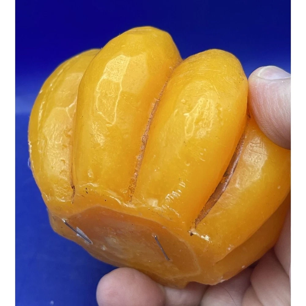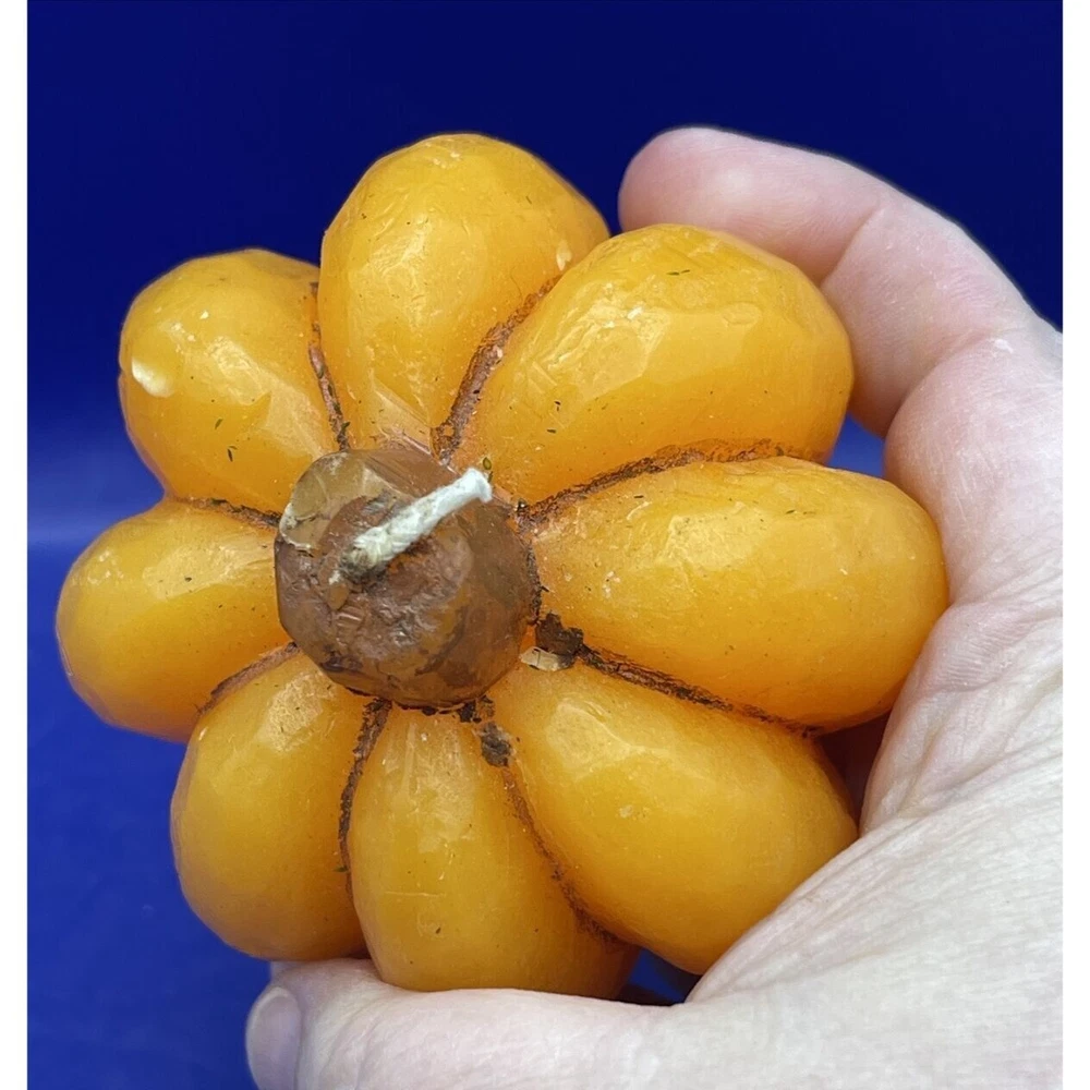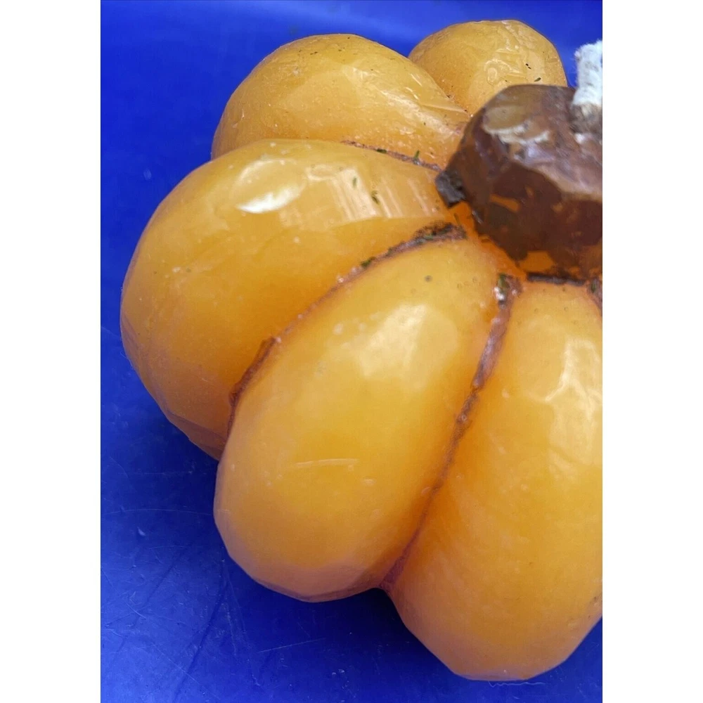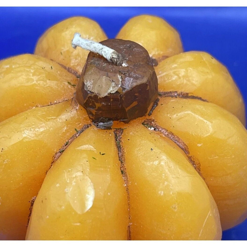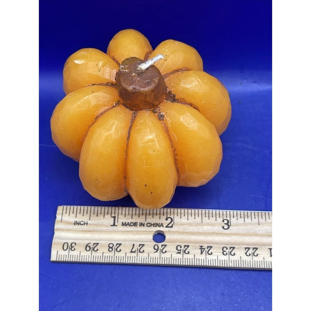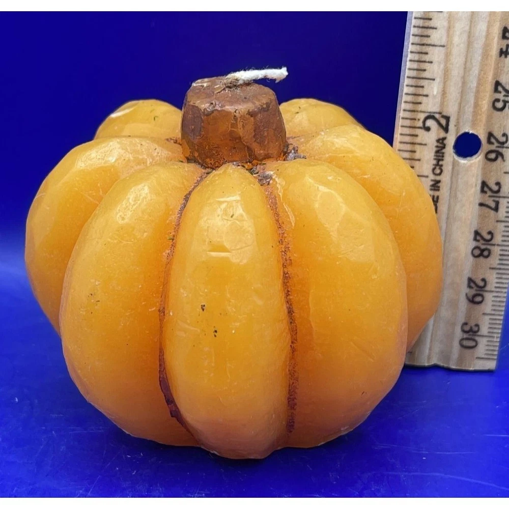 Enhance your fall décor with this charming pumpkin wax candle, perfect for Thanksgiving and Halloween centerpieces. • Festive pumpkin design • Ideal for seasonal décor • Long-lasting burn • Great for gifts ***Please be aware that preowned and vintage items are described as accurately as possible. Due to the advanced age and wear of items, there may be slight imperfections that are not immediately noticeable, such as spots that occur during the manufacture of an item. Major flaws will be mentioned in the description as well as shown in the pictures. Please look closely at all pictures for more detail on the condition and measurements. Due to lighting, actual colors may vary slightly from the pictures. Size: approximately 3" diameter Good Pre-owned vintage condition – Shows minimal wear expected with age and use but never burned - Please look closely at pictures and read description PLEASE READ THE FOLLOWING DETAILS BEFORE BIDDING: I live in a cat friendly home, and many of my items come from estate sales so I cannot always guarantee smoke free – I try to clean/wash items as best as I can before packing but you may want to wash again before use, especially if you have allergies – Please look at pictures carefully as I try to show the condition of the item as best as I can, including any flaws. I try my hardest to provide an accurate description of all my items. PLEASE EMAIL me with any additional questions you may have. Keep in mind, many of my items are vintage and may have some degree of stress cracks, crazing, etc. due to their age and normal wear. PLEASE CONTACT ME IMMEDIATELY WITH ANY PROBLEMS!!! I DO ACCEPT RETURNS AND WE WILL WORK OUT A SOLUTION THAT BENEFITS BOTH OF US!!! REASONABLE OFFERS ARE ALWAYS CONSIDERED!!! JUST ASK!!!