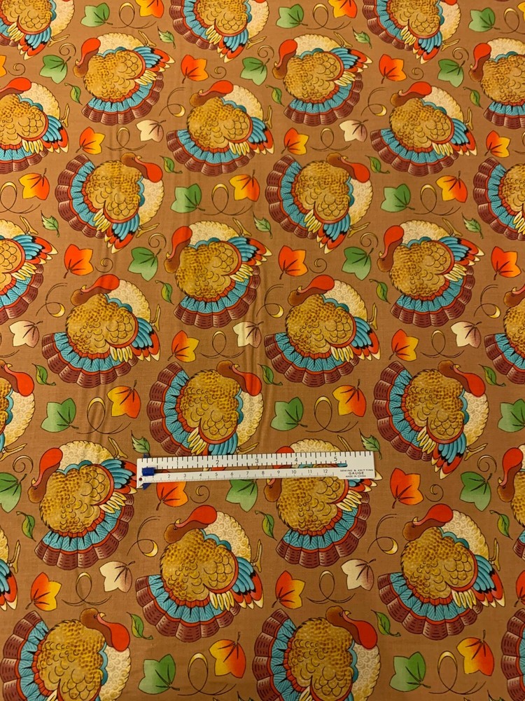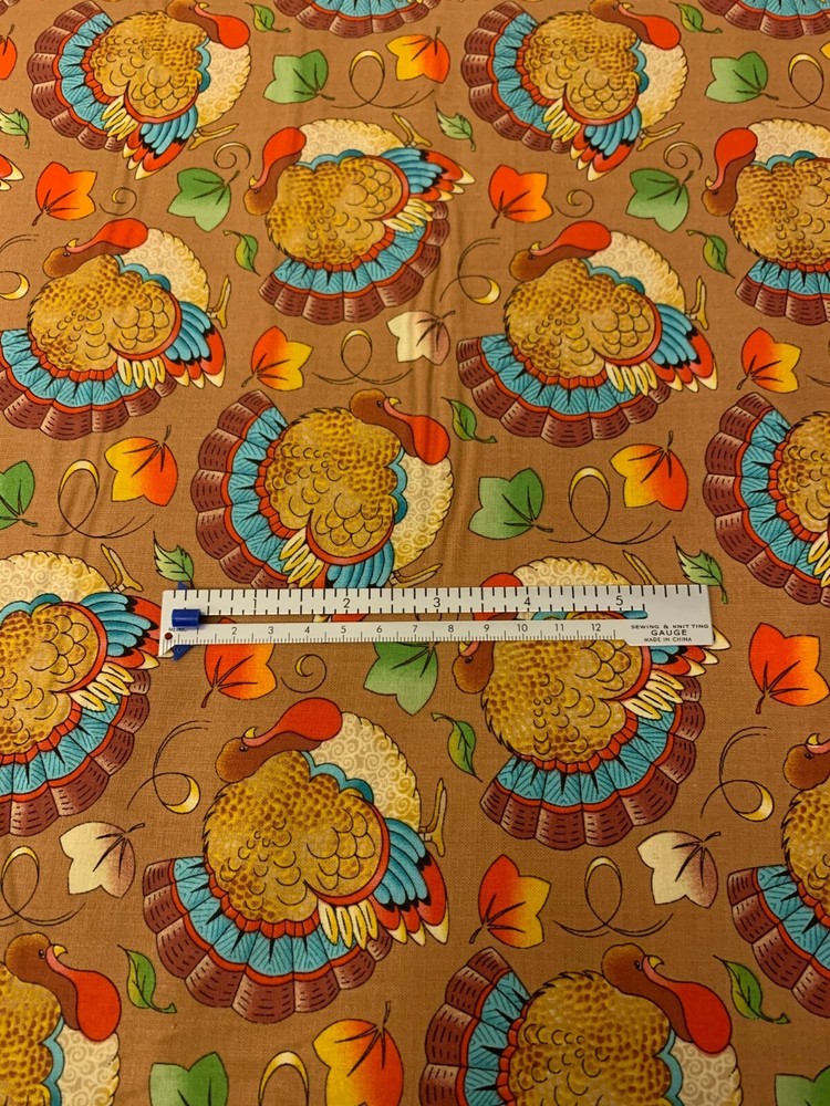 Seasonal - Fall Turkeys (Fabric By The 1/2 Yard). Condition is "New". Retails for $12.99/Yard Festive and Fun! Great for fall decor, these cartoon turkeys with multi-colored leaves on a tan/brown background. 6” ruler added for scale, not included in sale. Fabric stored in original plastic wrap until cut; cut and packaged (with care) to order and shipped from a smoke free home. 17 Colors on White base material. (pictured) Patty Reed Designs(TM) (C) 2019 Laurie Campbell La-Di-Draw, Inc. for Fabric Traditions (R) N.T.T Inc. Great for quilts, pillows, masks, hats and more! 100% cotton, 44” wide off the bolt. Sold by the half yard unit, cut to order as bolt allows (up to 10yards), generously cut with a little extra on the ends to make sure you’re covered! Colors vary by monitor, I've tried to accurately photograph as best I could with varied lighting to show it best. Thinning out yarn and fabric from my art room, see other items and more added regularly as I go through items. Combined shipping on orders of multiple items. Orders of 5+ yards total will receive full shipping refund.