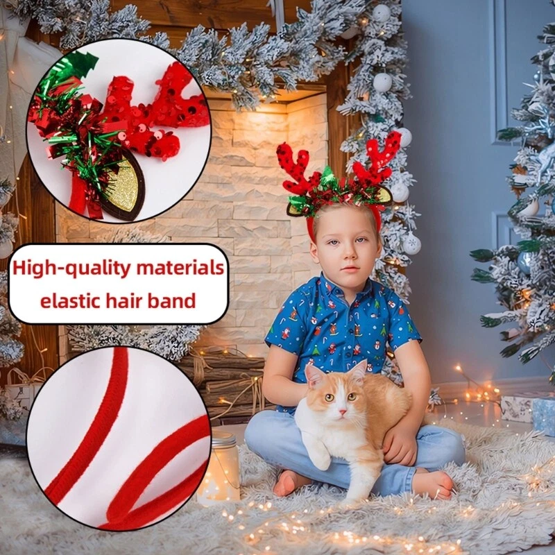 Seasonal Festival Christmas Headband Holiday Celebrate Sequins Reindeer Hairhoop