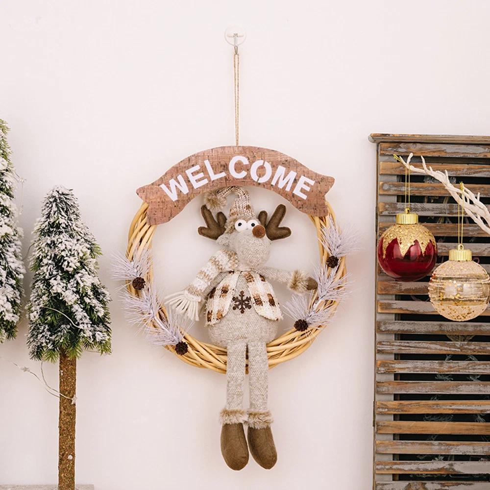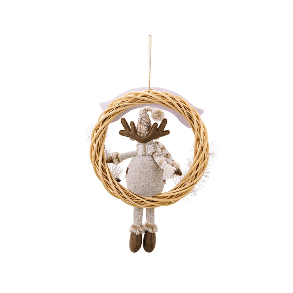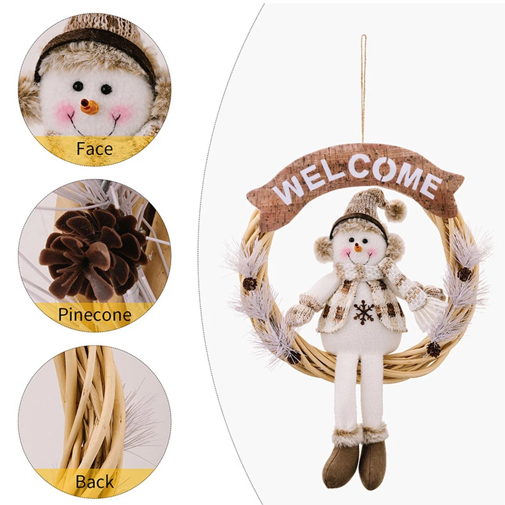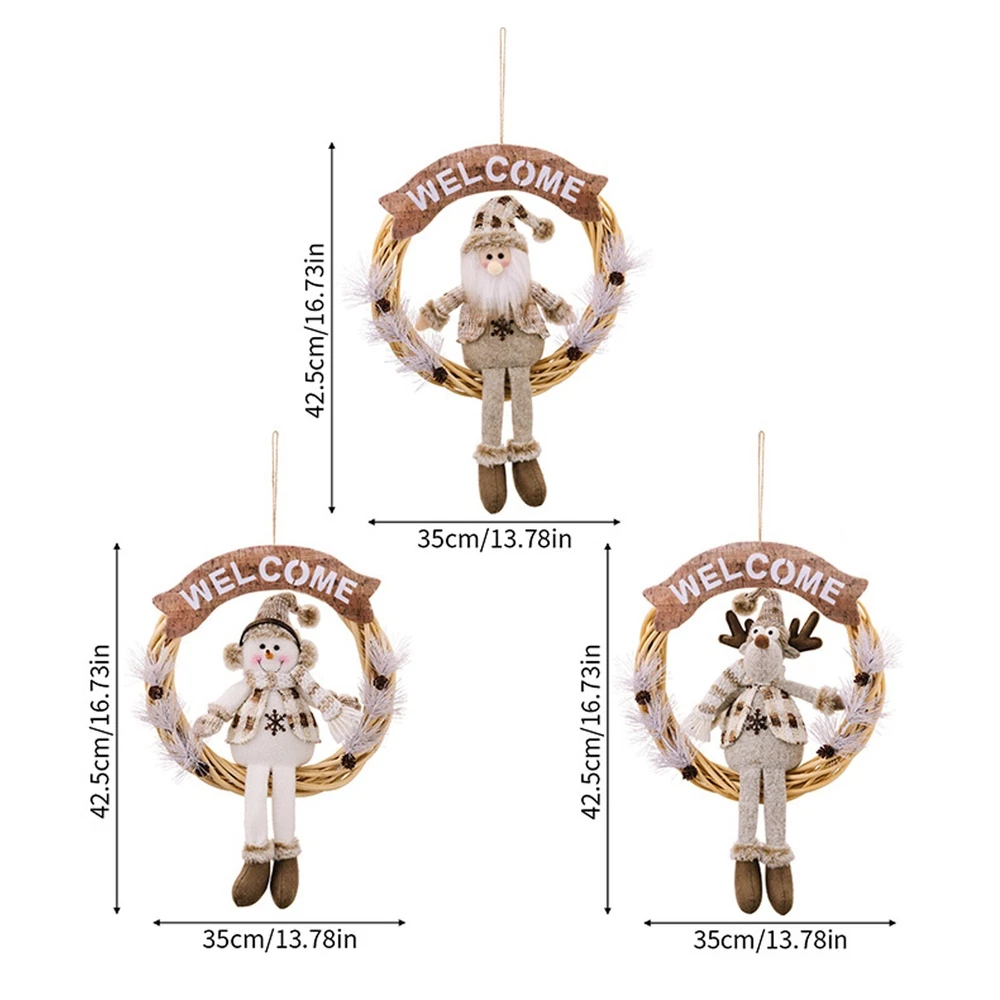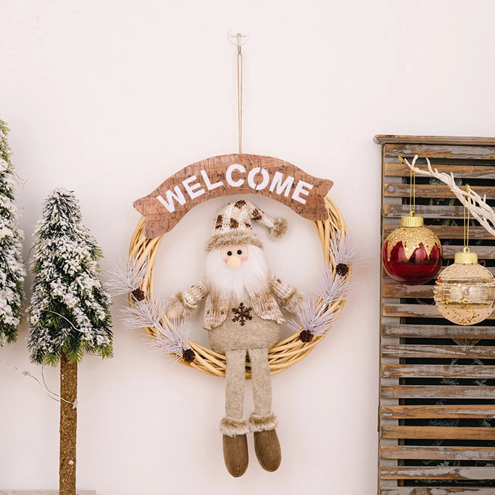 Seasonal Flower Wreath Pendant Santa/Snowman/Deer Dolls Decoration Handmade