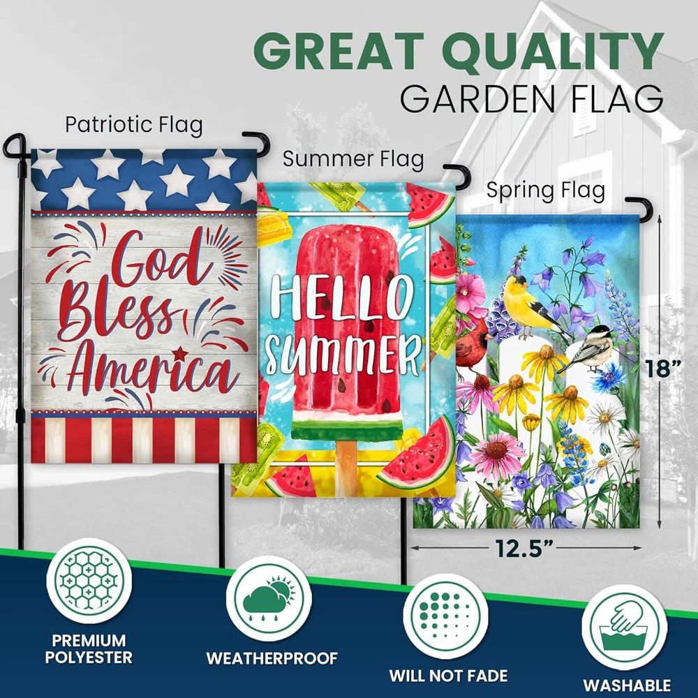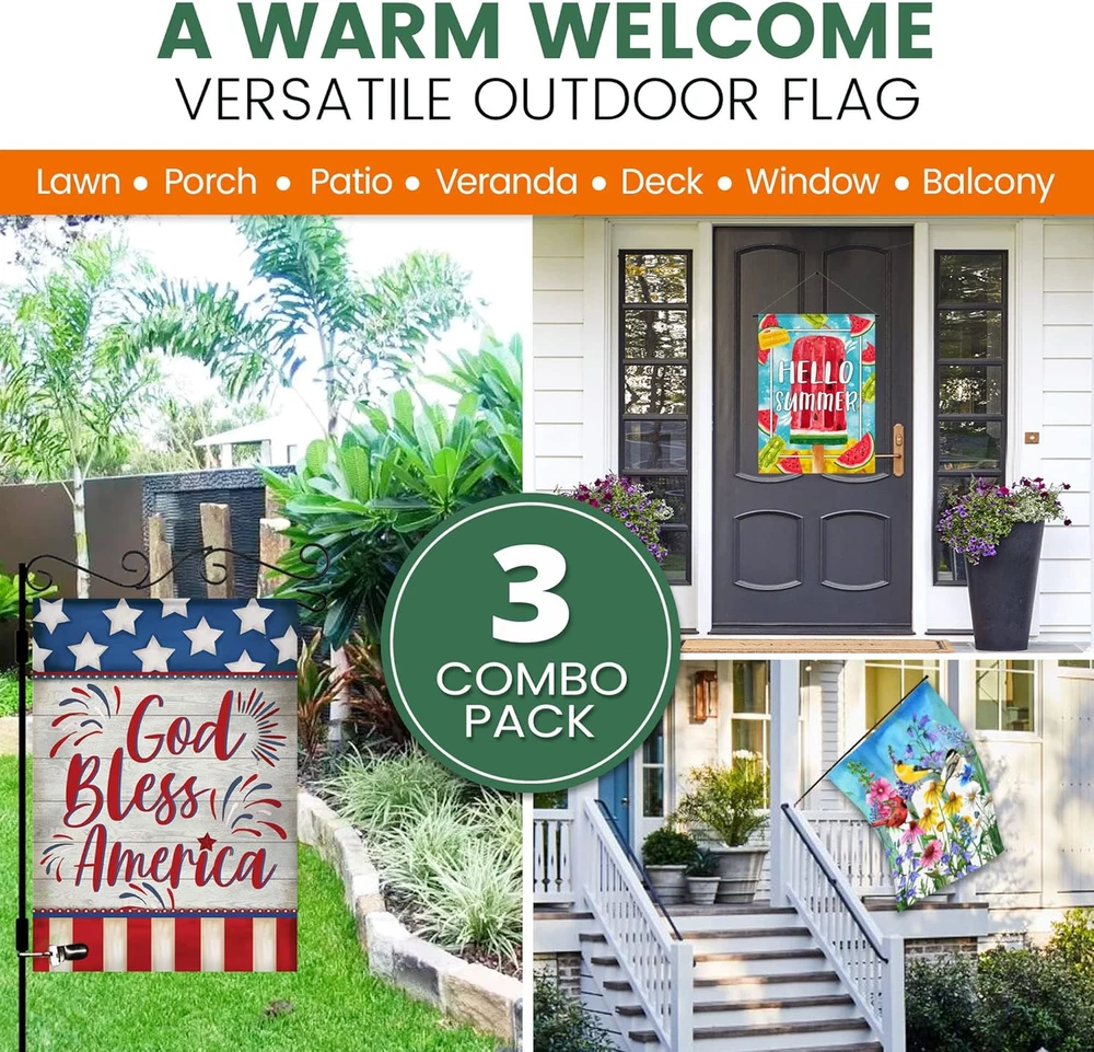 Seasonal Garden Flags - 3 Pack, 12.5 X 18 Inch Double-Sided Spring, Patriotic an