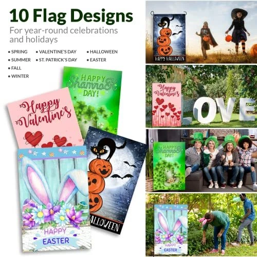 Seasonal Garden Flags Set Of 10 Garden Flags 12X18 Double Sided, Garden Flags
