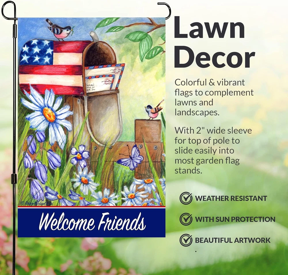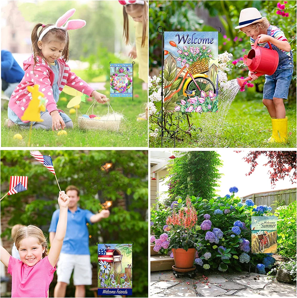 Store New Arrivals Add to Favorite View Feedback Contact Seasonal Garden Flags Set of 10 12X18 Inch Double Sided Yard Flag with Anti-Wind Clip and Stopper Small outside Decorative Holidays Outdoor Lawn Banner Spring Welcome Description Color Clear Product Dimensions 18"L x 12"W Material Polyester Fabric Type Polyester Item Weight 12 ounces Specific Uses For Product Outdoor Recommended Uses For Product Garden Occasion Holiday,Winter Special Feature Double Sided Brand Country Charm Garden Flags Product Care Instructions Hand Wash Only Manufacturer Bruce Michael & Co. Eye-catching garden flags double sided in a convenient 12x18 size, perfect for adding a touch of charm to your outdoor space. Fits most garden flag stands. Celebrate every holiday with our collection of small flags for yard and garden, ensuring your home is always festive and welcoming. Switch out your flags with the changing seasons and hoildays to showcase your style with our selection of seasonal flags for outside. Make your outdoor space come alive with our vibrant holiday flags for outside, designed to bring joy and cheer to your surroundings. Product Description 10 Garden Flags For All Seasons 10 garden flags 12" x 18" double sided designs for year-round celebrations and holidays. This assortment includes Spring, Summer, Fall and Winter. Valentine's Day, St. Patrick's Day, Halloween, Easter, 4th of July and Christmas Garden Flags for Outside EVERY SEASON - If you are looking for a way to brighten up your outdoor space, these garden flags will do the job! With vibrant colors and different seasons, these will be perfect for what you need. Whether you're going for Winter, Spring, Summer or Fall, we've got it all covered. Colorful and vibrant yard flags with a 2" wide sleeve for top of pole to slide easily into most garden flag stands. Seasonal Garden Flags 10 Garden Flags 12" x18" Double Sided 12" x 18" in Sizes Weather Resistant Double Sided with Sun Protection High Quality Material Wind Clip and Stopper 3 Layers Of Material Keeps your holiday garden flags assortment from fading in sunny areas. We use study quality material to hold up in stormy weather conditions with sun protection material for bright and colorful yard banners that can be used for many seasons. Give your garden or backyard a splash of color. Impressive Artwork Your home and garden will look beautiful with charming yard flags that give your house great curb appeal. Our yard banners are unique mini flags that you can enjoy for years to come. Watercolor designs that are bright and colorful give your yard that festive look for every season. Outdoor Garden Flags QUALITY MATERIAL WITH 3 LAYERS - Made of 3 layers, these flags are a durable and stylish choice for your garden. These beautiful lawn flags are perfect for all seasons and holidays. They come with two fabric panels on each side, one being the reverse of the other. The fabric is UV treated to last through many seasons outdoors. BRIGHT AND VIBRANT COLORS - With these beautiful flags, your garden will come to life every season. You'll be able to display a new flag for each season! These flags are durable, UV-resistant and made with vibrant colors that won't fade, so you can enjoy all the seasons without worrying about buying them. Yard Flags Add a splash of vibrant color to your front or backyard with our charming double sided garden flags celebrating all holidays and seasons. Add to Cart Add to Cart Customer Reviews 4.7 out of 5 stars 4,813 4.7 out of 5 stars 1,116 4.7 out of 5 stars 52 Price $21.49 $ 21 . 49 $21.49 $ 21 . 49 — 12 x 18" ✓ ✓ ✓ Double Sided ✓ ✓ ✓ Durable Material ✓ ✓ ✓ Weather Resistant ✓ ✓ ✓ Hand Painted Designs ✓ ✓ ✓ ABOUT US We offer the best prices around on high quality products. Our E-store includes media such as books, movies, music and games while offering electronics, toys, sporting apparel, clothing, tools, general home, garden items and more. SHIPPING We are always working hard to ensure your package arrives as soon as possible. Please understand that some factors like weather, high postal traffic, and the performance of shipping companies are outside of our control. We offer free shipping to the lower 48 states and ship within 2 business days of payment, usually sooner. We do not accept P.O. Boxes. Please provide a physical address. RETURNS We offer a 30-Day Return Policy on items which you are not completely satisfied with. You have the option for a full-refund or an exchange of the item. No returns are available on items shipped outside of the USA. PAYMENT We accept PayPal. CONTACT US This page content is yet to come Please ad us to your favorite seller and visit again later Thank You CUSTOMER SATISFACTION We try our very best to make sure every customer is completely satisfied. If there's a problem, message us! We're happy to help.