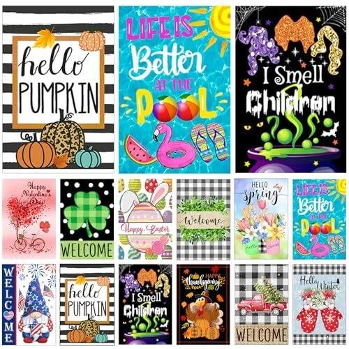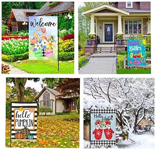 Seasonal Garden Flags Set of 12 Double Sided 12x18 Inch Welcome Holiday Yard