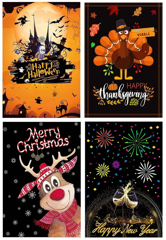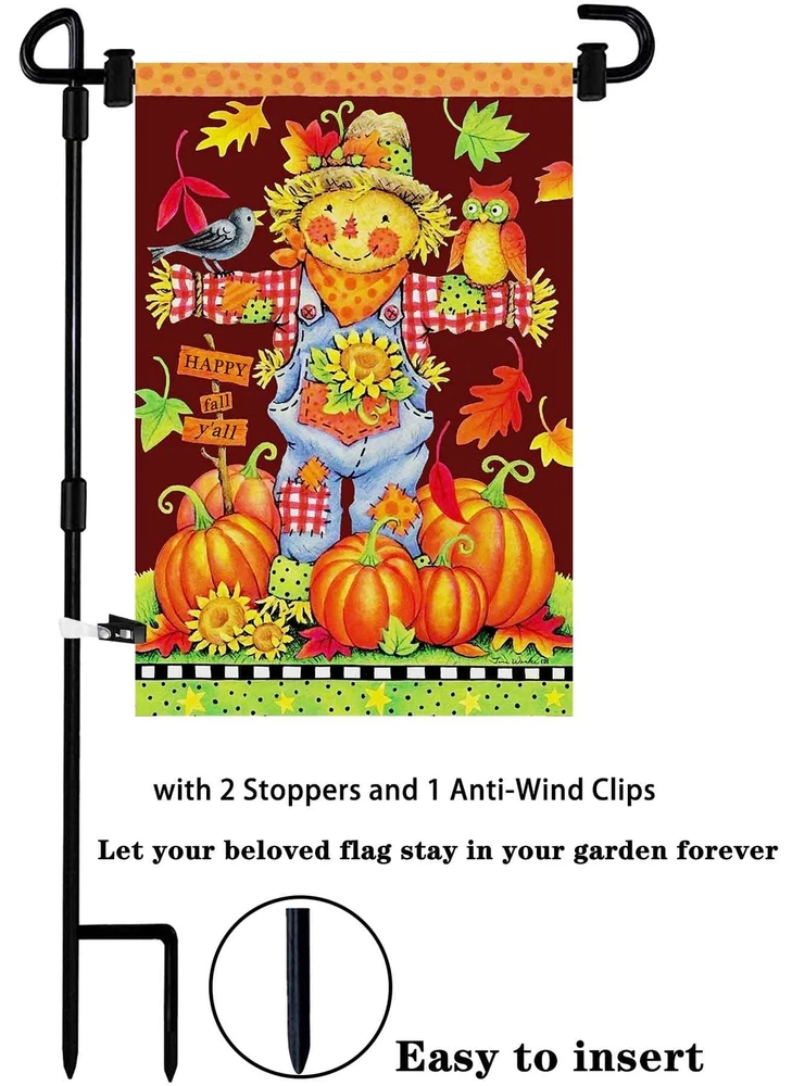 Seasonal Garden Flags Set of 12 and Garden Flag Stand-Holder-Pole Double Sided Burlap 12.5 x 18 Inch Fall House Flags Garden Flags for Outside Fall Garden Flags Halloween Garden Flags Thanksgiving Feature 1- Our outdoor flags decorative 12.5x18 are exquisitely designed, lively and beautifully patterned. It is the best choice for decorating backyard, lawn, garden, deck, patio, porch or balcony. 2- Made of high-density double-layer Burlap garden flag thanksgiving, it is durable. 3- Using advanced double-sided printing technology, both sides of the pattern are clearly visible. Make your holiday garden flags more attractive. 4- Easy to Install:The garden flagpole is easy to install, only needs to tighten the three parts to each other, and is easy to operate without tools. The bottom of the flagpole is machined and easily inserted into the ground without damaging the environment. 5- Show life, highlight the festive atmosphere. For example, our garden sign holder and season flags suitable for New Year's Day flag, Lincoln's Birthday flag, St. Valentine's Day flag, Washington's Birthday flag, St. Patrick's Day flag, April Fool's Day flag, Easter flag, Arbor Day, Mother's Day flag, Memorial Day flag, Flag Day, Father's Day, Independence Day flag, Labor Day, Veteran's Day flag, Halloween flag, Thanksgiving Day flag, Christmas flag ect. 6- The accessories are complete, you can use it when you buy.Rugged and durable flagpole with flag stoppers and Anti-Wind Clips,all garden flag holiday set. Buy and use, let your beloved flag float in your garden forever Information: Size: 12.5*18 Inch Cuff diameter: 1.8 inches Material: 100% Burlap Printing: double-sided Packing include: garden flag stand x 1 garden flags for all seasons x 12 Anti-Wind Clips x 1 Garden flag Stoppers x 2 Quickly join the shopping cart and enjoy the joy of all holiday. MORE BENEFITS Garden flag with stand included - Decorate your garden with outside flag holder and decorative flags for outside 12.5 x18:St. Patricks Garden Flag, Easter Garden Flag, 4th of July Garden Flag, Halloween Garden Flag, Thanksgiving Garden Flag, Christmas Garden Flag, valentine's day Garden Flag, Spring garden Flag, Autumn garden Flag,Winter garden Flag,New years flags to fill your garden with the joy of all Seasons and Holidays High quality lawn flag stand & holiday yard flags - Made of rust-proof black metal, not easy to bend.Made from high-density and double thickness Burlap,durability mini garden flags Double-sided 2 layer garden flags for all seasons - outdoor flags decorative 12.5 x 18,top with cuffs for outdoor garden flag holder Application scenario - outdoor garden flag holder and holiday garden flags assortment sets can be used in any backyard, lawn, garden, deck, patio, porch or balcony to add joy to your all holidays Enjoy a pleasant shopping experience.if you are not satisfied with the product,please contact us promptly and we will give you a satisfactory response.join your shopping cart to celebrate your all festival