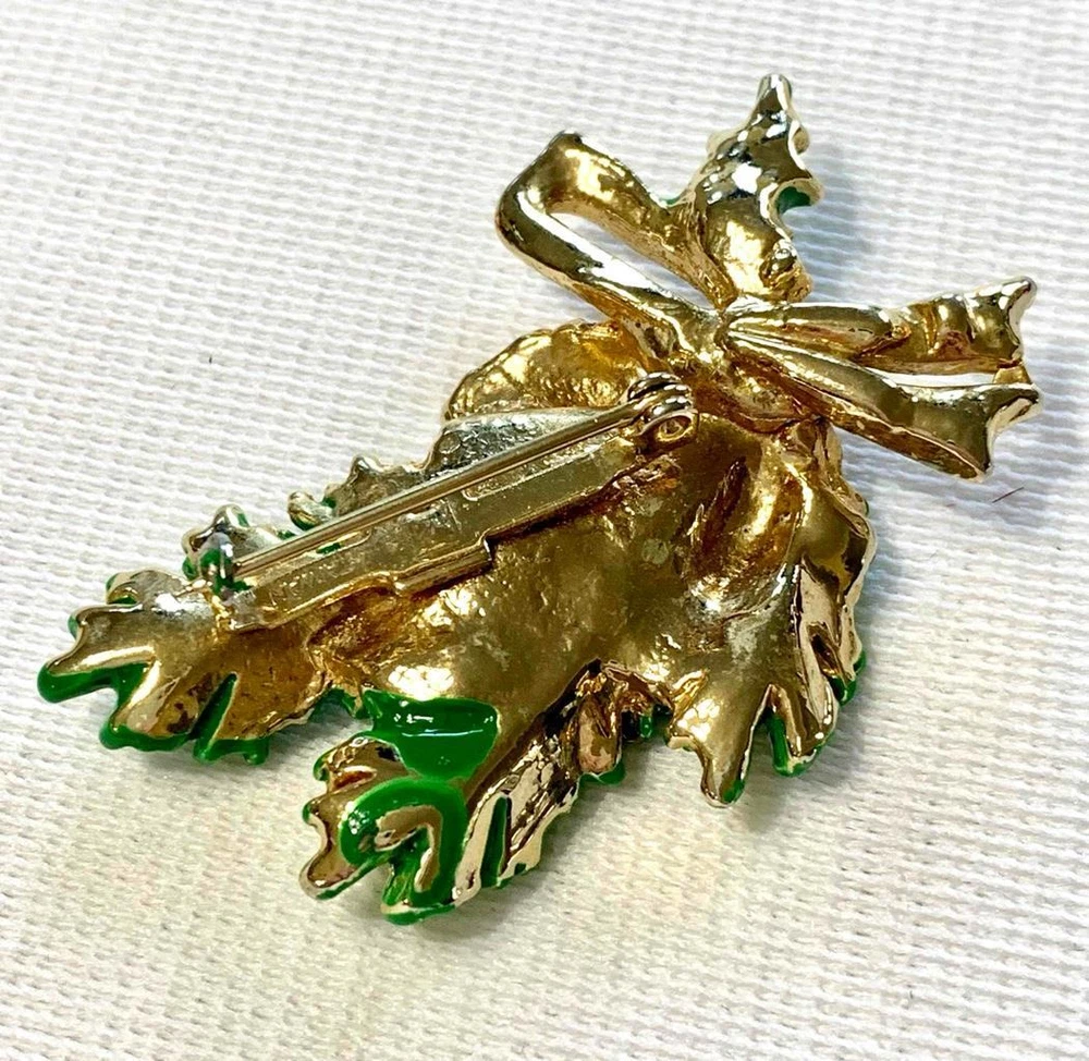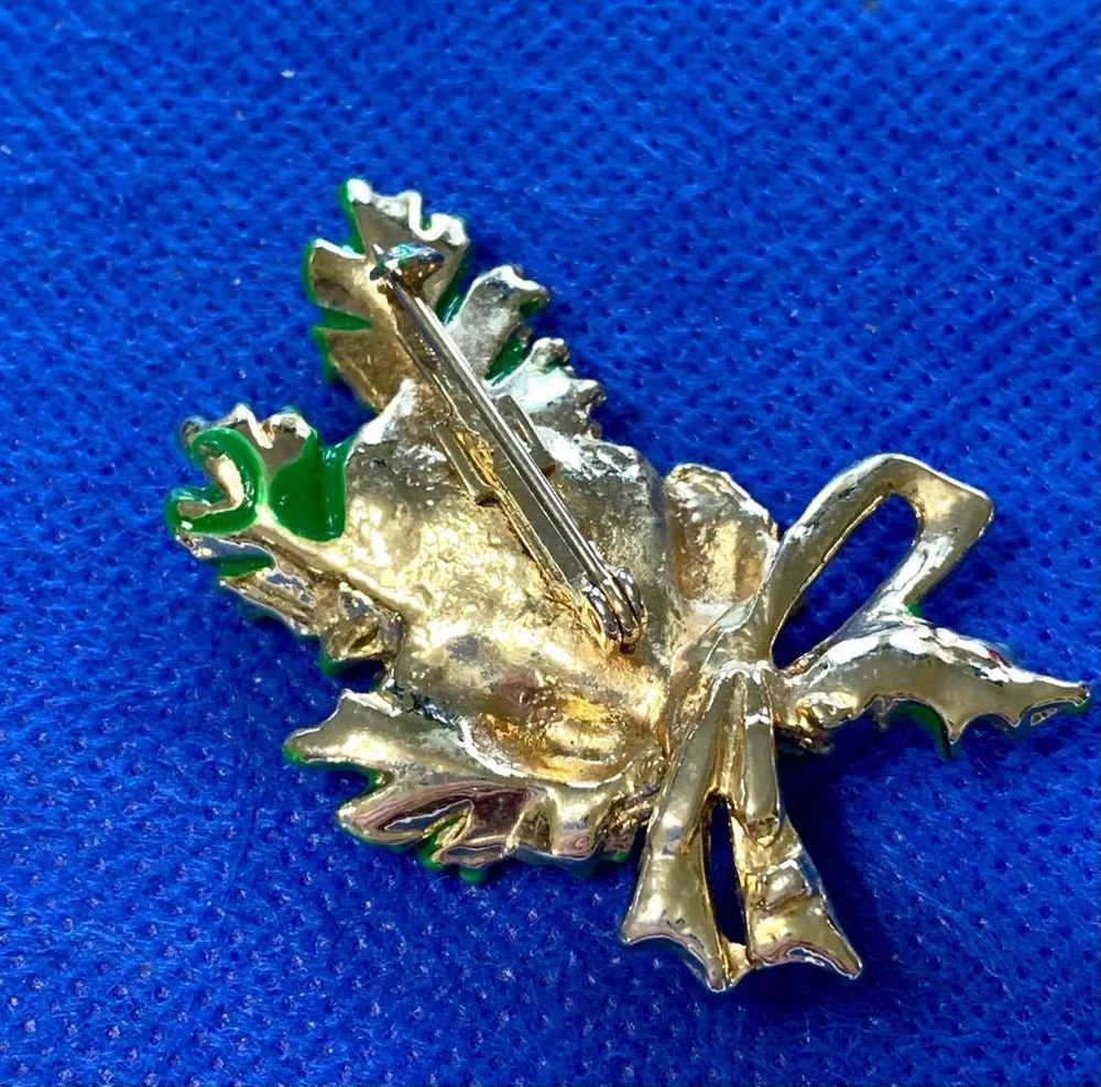 Nicely decorated gold tone pine and holly Christmas Pin Brooch. It is enamel decorated with green pine, amber cones, green holly leaves and red berries all tied with a gold tone ribbon. Marked Taiwan. It measures about 2" tall by 1-3/8" long. Please examine the attached photos, they describe this listing better than any words. Click on any photo to 'super size' them. We'll be happy to answer any questions. We will wrap securely and mail it in a shipping box. Seasonal Gold Tone Christmas Pine & Holly Enamel Decorated Pin Brooch Seasonal Gold Tone Christmas Pine & Holly Enamel Decorated Pin Brooch Click images to enlarge Description Nicely decorated gold tone pine and holly Christmas Pin Brooch. It is enamel decorated with green pine, amber cones, green holly leaves and red berries all tied with a gold tone ribbon. Marked Taiwan. It measures about 2" tall by 1-3/8" long. Please examine the attached photos, they describe this listing better than any words . C lick on any photo to 'super size' them. We'll be happy to answer any questions. We will wrap securely and mail it in a shipping box. RC 4 Black Hills Gold 12/1/22 Payment eBayPay accepts many forms of payment, including PayPal. COMBINED SHIPPING - please place items in eBay's shopping cart. When you are done shopping in our store, click on the cart and Request an Invoice. For jewelry items, you pay shipping on one item, plus 25¢ shipping for each additional item. Payment is expected within 4 days of the sale. If you need additional time to pay, we will be happy to work with you IF YOU CONTACT US. If you do not contact us, the item will be reported to eBay as unpaid. Sales Tax: if your state has a law requiring sales tax be paid on items purchased on the internet, eBay will add that tax to your total purchase price. *** International Buyers ~ Please Note: Import duties, taxes and charges are not included in the item price or shipping charges. These charges are the buyer's responsibility. Please check with your country's customs office to determine what these additional costs will be prior to bidding/buying. These charges are normally collected by the delivering freight (shipping) company or when you pick the item up - do not confuse them for additional shipping charges. We do not mark merchandise values below value or mark items as "gifts" and will not send items prohibited by your country's import laws. US and International government regulations prohibit such behavior. Please DO NOT ASK us to lie. Shipping SHIPPING TIME: Jewelry is shipped next business day. Larger items within 3 business days. If you need an item sooner, please let us know and we will expedite shipping. SHIPPING CHARGE: When we use eBay's Calculated Shipping, we determine the box size and weight and add shipping insurance, then eBay calculates the cost to ship. Smaller items are shipped at a flat rate, shown on the listing. We try to price our items below value to allow for shipping charges. Our guarantee to you: We will package your item to shipping industry standards so it will have the best possible chance of reaching you safely. As you can see from our feedback, we put our customer's satisfaction first . We work hard to gain a 5-star rating. If we have failed to meet this goal, PLEASE contact us and give us the opportunity to add you to our "Totally Satisfied" customer list. Terms of Sale Please note that our photos are part of our description and that vintage or pre-owned items will usually have some signs of wear. Please ask if you have questions about any item. We will accept returns for the following reasons: On items listed as ACCEPT RETURNS - Changed mind, Doesn't fit, Don't like it, Color is not what I expected On ALL items under "eBay guarantee" policy - Wrong item sent, Not as described, Arrived broken, etc. Please contact us within 4 days of receipt of the item if you intend to return it. Items being returned must be mailed back no later than 30 days from date of sale. Item must be in ORIGINAL CONDITION with no alterations or damage received while in your possession. Securely wrap items along with any display or presentation boxes, using bubble wrap, and place them in the original box or a sturdy substitute for mailing. If the listing shows we pay return shipping, eBay will ask us to send you a return mailing label and will notify you where to find it for printing. If the listing shows you pay for return shipping, we provide you with our mailing address through eBay. All items are under eBay guarantee and if they are not as described or we mailed the wrong item, we pay the shipping both ways. (Please note that buyers are responsible for reading descriptions and looking at photos. If the item is not as expected because you did not look at the entire listing, it may be returned, but you pay the postage.) Refunds will be made through eBay's Payment system, to the account, card or service that you used in the purchase. Please contact us if you feel an item was not as advertised so we can turn a negative situation into a positive solution. WE DO NOT ACCEPT RETURNS ON CLOTHING or Soft Goods . About Us This husband and wife team have been selling on eBay since 2006. We live in the Ohio Valley where many of the best glass houses of the 1900's were located and sold vintage elegant glassware for many years. We currently offer vintage and other nice jewelry, along with collectibles and assorted other items. We find many treasures at local estate auctions and pass them on to you, our buyer. We are continually learning about vintage jewelry, glass, china and other collectible items and we appreciate your comments and questions. Contact Us Please contact us through E-Bay's link "Ask seller a question". If you have a question about an item, please ask before the last day of the auction so we have time to respond. When inquiring about an item that is no longer listed, please give us a description or title for the item. Thank you for looking! Images sell! Get Supersize