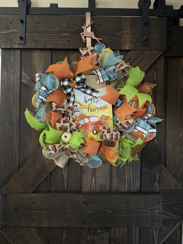 Form: Wreath Country/Region of Manufacture: United States Artificial/Fresh: Artificial Product: Door Decoration Brand: Handmade Color: Multicolor Occasion: All Occasions Material: Mixed Materials Theme: Seasonal Type: Light