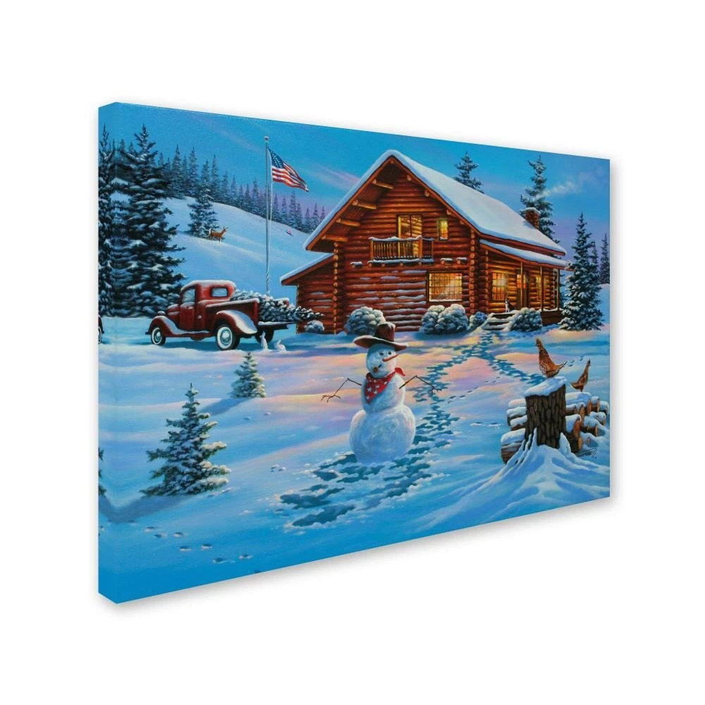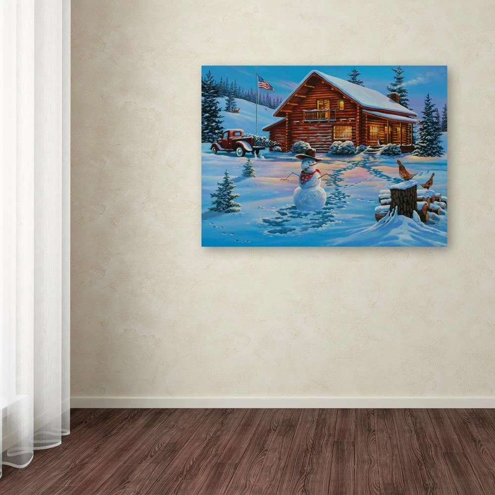 This ready to hang, gallery-wrapped art piece features a snowman in the center of the frame with a building behind it. Geno is a native of Panama city Florida and has been drawing since he was a young . Being the oldest of five boys, he has been blessed to inherit the artistic Gene that has been passed down to the oldest for the past four generations. With no formal training, he prides himself on the ability to achieve perfection. He also believes that his strength in his artwork is achieved by being a highly versatile artist. Giclee (jee-clay) is an advanced printmaking process for creating high quality fine art reproductions. The attainable excellence that giclee printmaking affords makes the reproduction virtually indistinguishable from the original piece. The result is wide acceptance of giclee by galleries, museums, and private collectors. Gallery wrap is a method of stretching an artist's canvas so that the canvas wraps around the sides and is secured a , wooden frame. This method of stretching and preparing a canvas allows for a frameless presentation of the finished painting. Artist: geno peoples Subject: Landscape Style: cottage Product Type: Gallery-Wrapped canvas art Made in USA