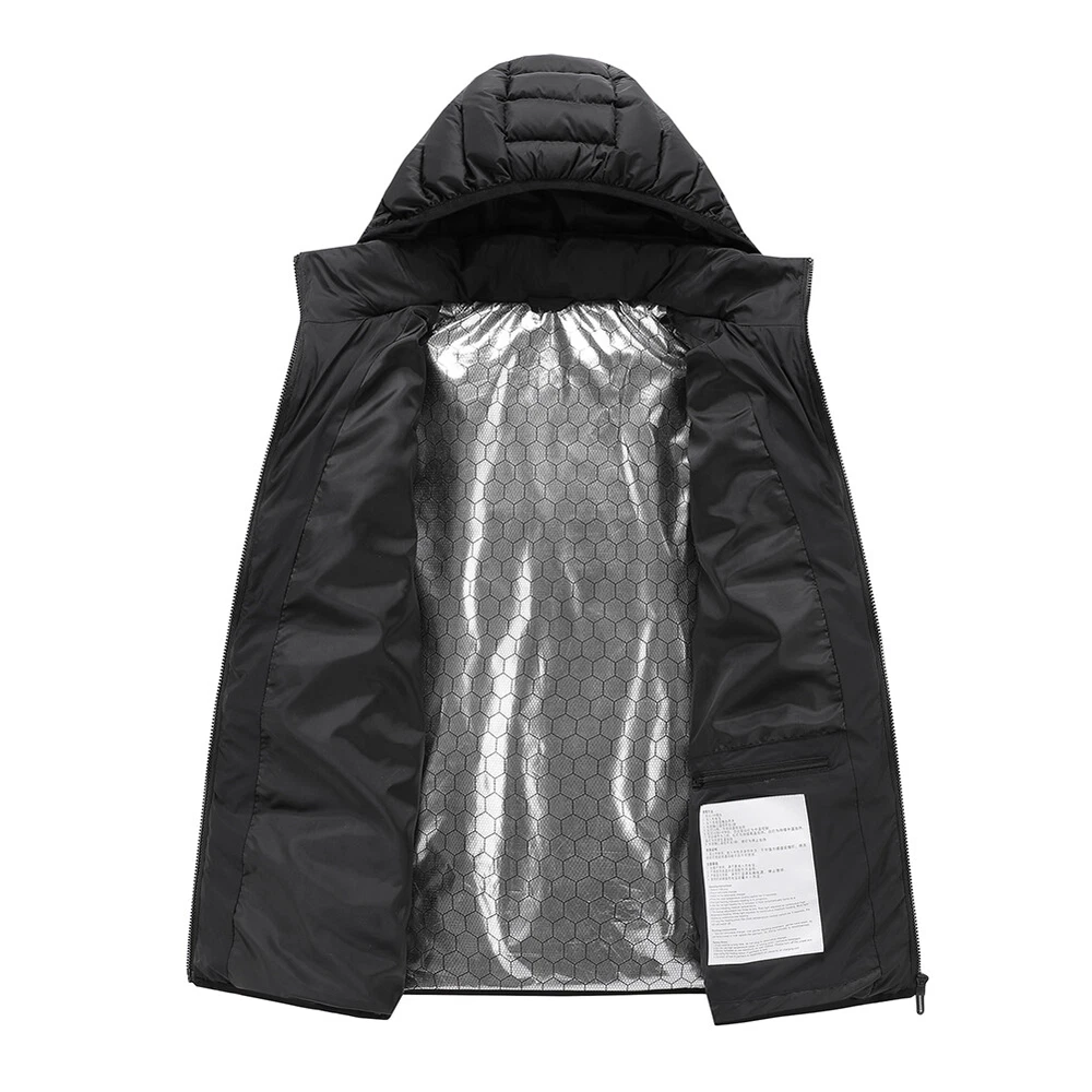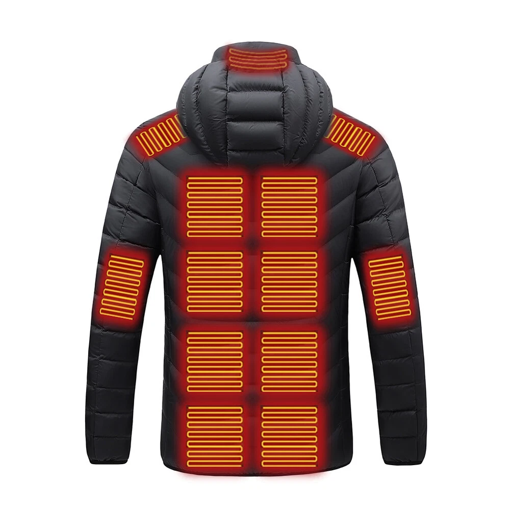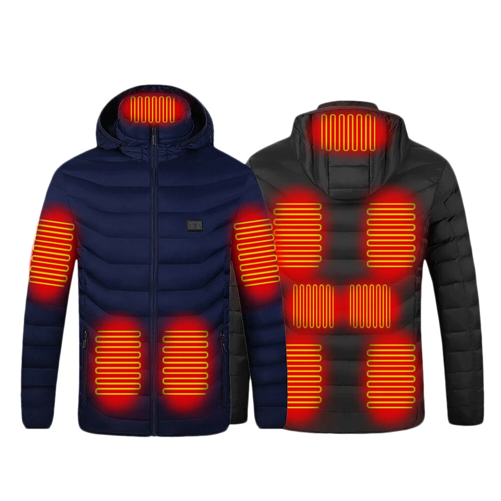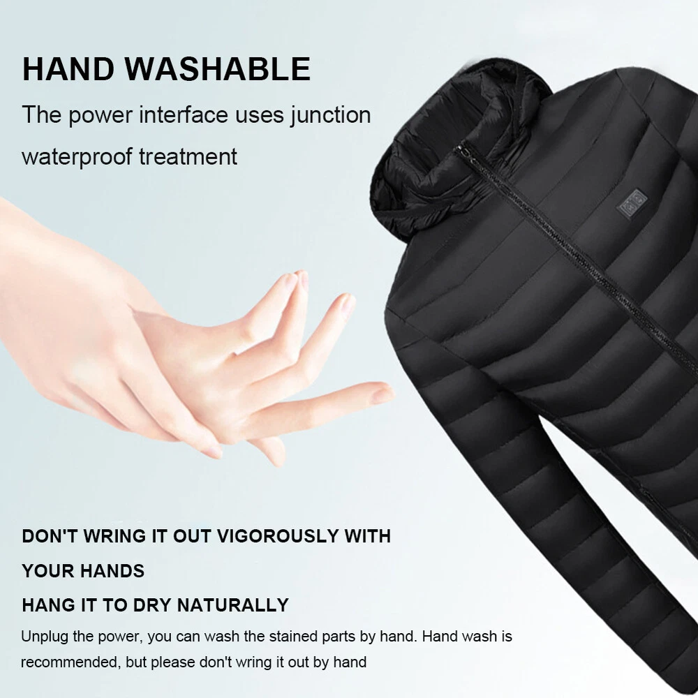 11/15 Areas Electric Heating Jackets USB Charge Thermal Coat for Skiing Camping Note: Slim Style Heating Coat,please choose one bigger size when you choose as our size chart as you also need to wear some inner clothes!! Features: *1. 11 Heating Zones and 3 Temperature Adjustment: Carbon fiber heating elements generate heat across the waist, belly, and back, promote blood circulation and keep you warm. 3 heating temperature adjustment according to your needs. *2. USB Charging: Easy to charge. You need to always connect 5V 2A mobile power(this product does not include mobile power). The mobile power needs to be removed during washing. *3. Safe and Healthy: The 5V far infrared heating is far below the human body safety voltage. Large area carbon fiber wire heater is safe and insulated, ensure safe heating for you. *4. Skin-friendly and Comfortable: Soft and comfortable touch, premium fabrics, keep you warm in cold winter conditions without wearing thick clothes. *5. Wide Application: Suitable for outdoor skiing, winter fishing, cycling, camping, skating, or daily wear, etc. Description: *1. Size: M/L/XL/XXL/3XL/4XL/5XL/6XL *2. Material: Lining: Polyester Fabric: Nylon 100% cotton *3. Temperature Adjustment: Warm: 55 ℃ (Red Light) Comfort: 45 ℃ (White Light) Energy Saving: 35 ℃ (Blue Light) Instructions: *1. Take out the USB plug. *2. Access to the mobile charging power source. *3. Press and hold the chest temperature control output switch for 3 seconds. *4. Long press the chest temperature control switch for 3 seconds, start to warm up and then adjust to the medium temperature heat when you need to always connect the mobile power. *5. Manual adjustment to the third gear,warm temperature of 45 degrees Celsius, comfortable gear temperature of 35 degrees Celsius, energy-saving gear temperature of 25 degrees Celsius. *6. Press and hold the chest temperature control switch for 3 seconds, and turn off the light to stop heating. Washing Tips: - Machine wash & hand wash are available. Do not wring or twists. - Unplug the powers before washing and make sure it is dried before heating. Package List: 1* Heated Jacket(not include power bank)