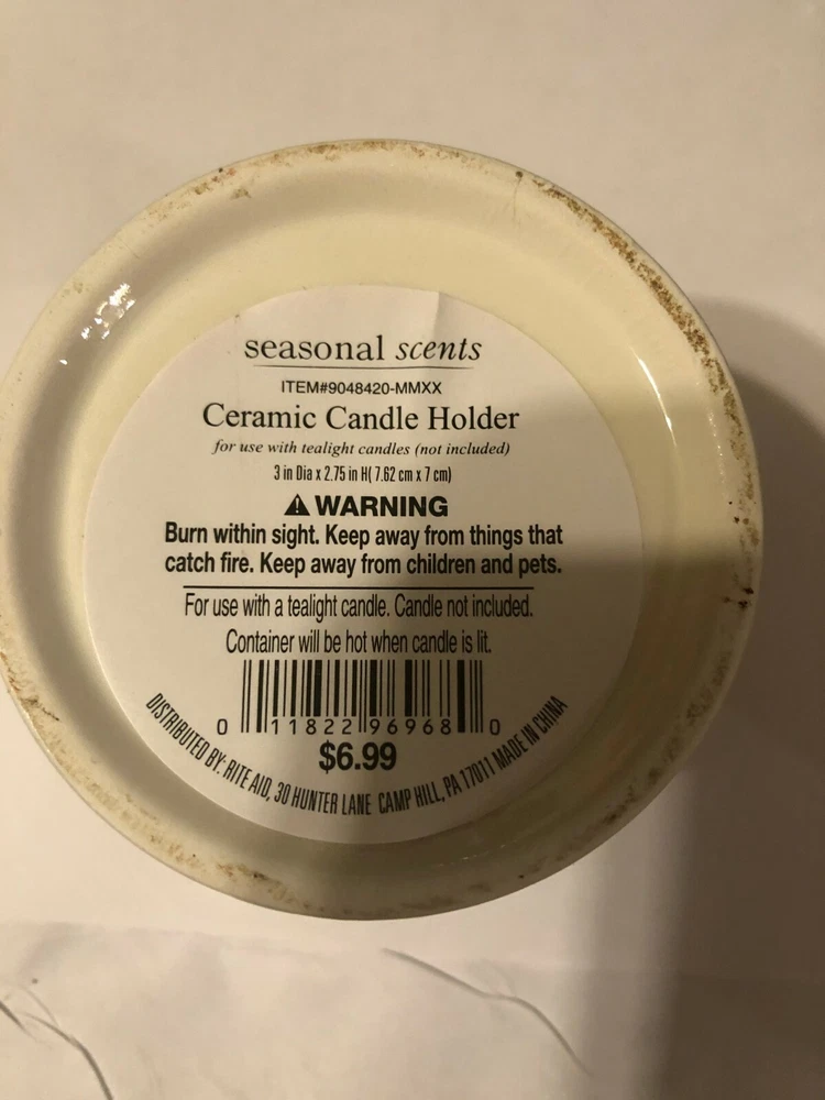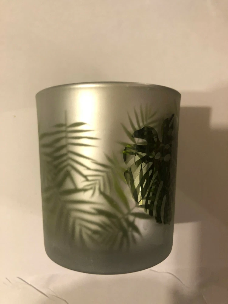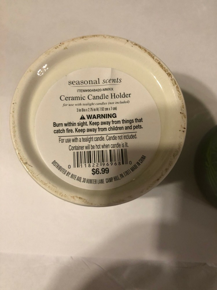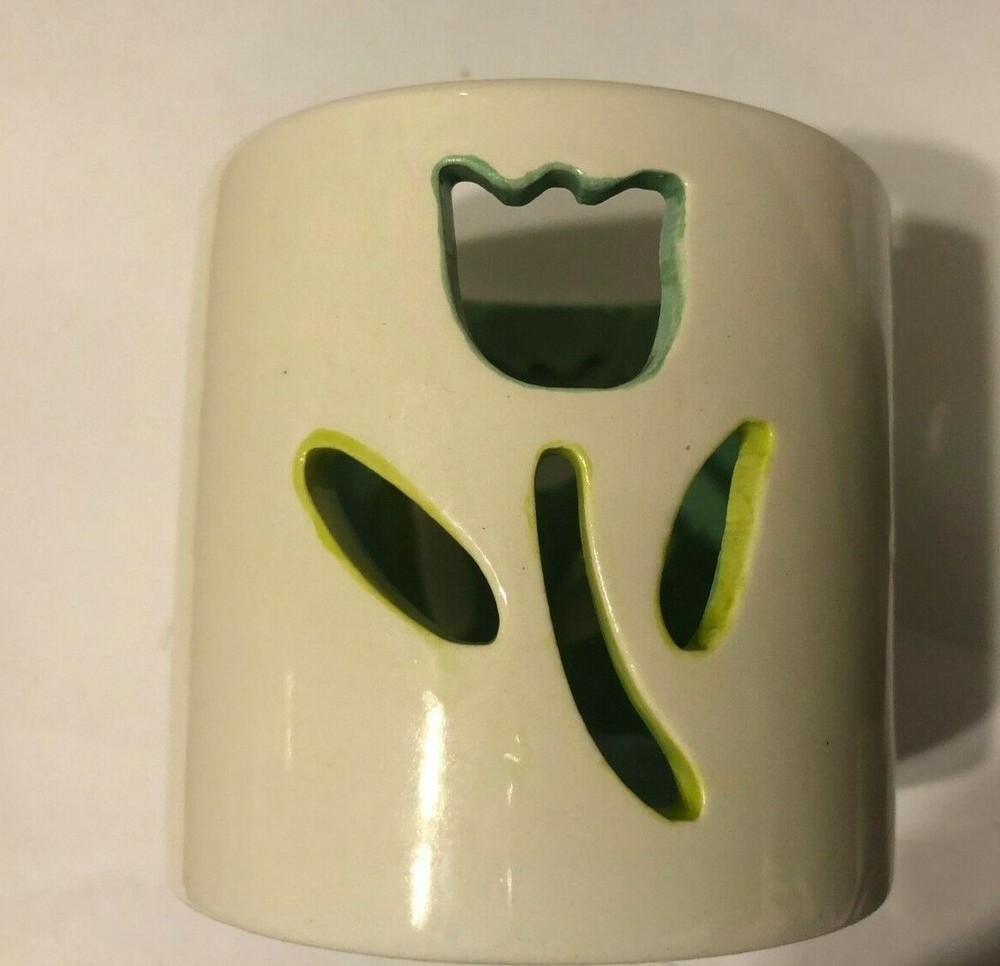 Season Scent Candle Holder. Your choice of ceramic flower or glass with leaves on it. The ceramic one measures about 2.75" in height and the diameter of the opening at the top measures about 2.5". The glass one measures about 3' in height and the the diameter of the opening is about 2.5".