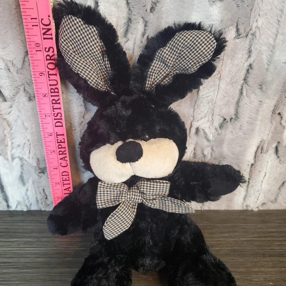 Seasonal Sensations Black Plush Bunny Rabbit Gingham Checkered Ears Bow 2009 11"