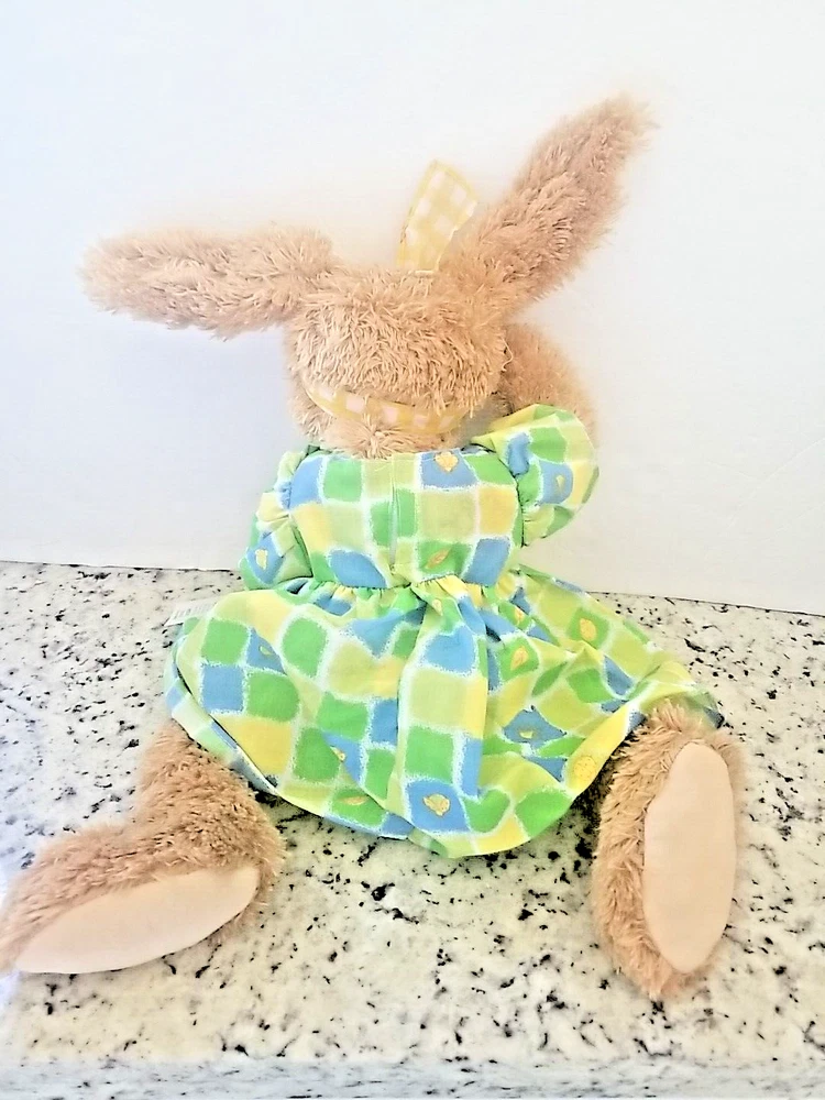 Celebrate Easter with these adorable plush cottontail bunny rabbits. This couple includes a boy and girl rabbit, both are dressed. She is wearing a dress with a coordinating headband and he is wearing green overalls, perfect for popping into an Easter Basket, they will be the main event. Great for cuddling or displaying on a shelf or sitting on a bed or anywhere you want a pop of Easter Color. Get into the spirit of the season with these Seasonal Sensations Cottontail Easter Bunny Rabbit Plush Stuffed Animals. About 22 inches to the tips of their ears New