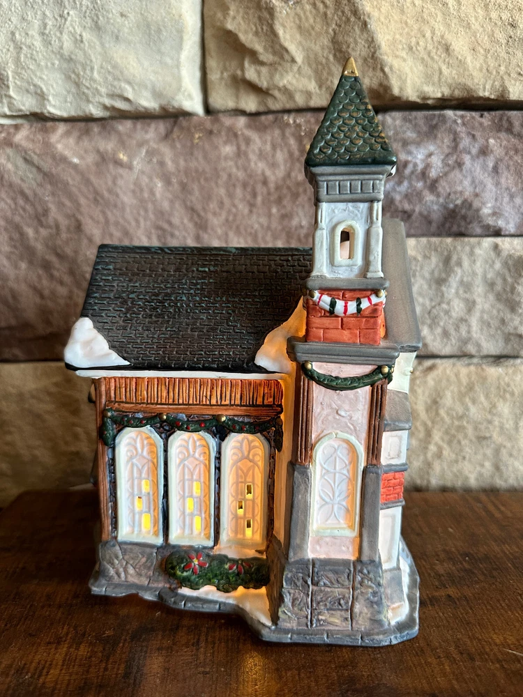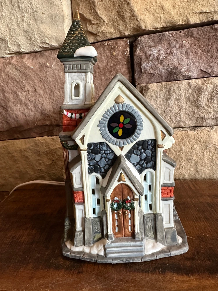 Seasonal Specialties Christmas Valley Stained Glass Church Christmas Village Vintage Excellent condition No chips or cracks No original packaging Light included Measures approx 9x6.25x5" Please look at all pictures and ask any questions before bidding/buying. All sales are final. No returns will be accepted. *****Please note by clicking on Buy It Now or Bidding on an item you are aware that all sales are final and No returns will be accepted.***** Please pay within 24 hours of winning auction or accepting an offer. International Shipping is available through eBay Global Shipping Program. Alaska, Hawaii and US Territories residents please contact me for shipping costs before bidding.