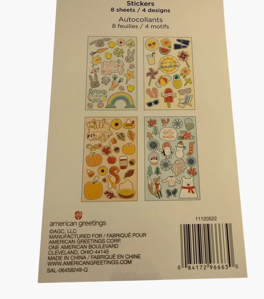 Capture the essence of each season with these vibrant stickers. Perfect for decorating planners, scrapbooks, and art projects with flair. • 166 stickers total • 8 sheets, 4 designs • Bright seasonal themes • Great for crafts & decor Condition: New With Tags seasonal stickers, crafting supplies, American Greetings, planner decor, scrapbook stickers, arts and crafts, seasonal decor, vibrant stickers, colorful designs, sticker pack, decorative stickers, seasonal themes, sticker collection Ships same or next day