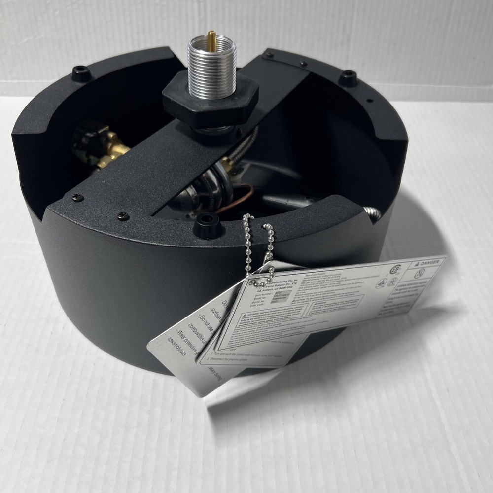 ITEM IS NEW, OUT OF THE BOX ITEM DOES NOT COME WITH ORIGINAL BOX FEATURES : Finish: Matte Black Overall Depth 10" Shape: Round Material: Steel Stainless SteelZinc and Plastic Overall Width: 10" Overall Height: 4.17" Color: Black Gas Type: Propane Ignition Type: Match Heating Area: 15 sq. ft. Nomenclature: 52101 PIT FIRE TABLETOP Burning Depth: .95" Burning Height: 8" Burning Width: 8" --- Secured & tracked shipping