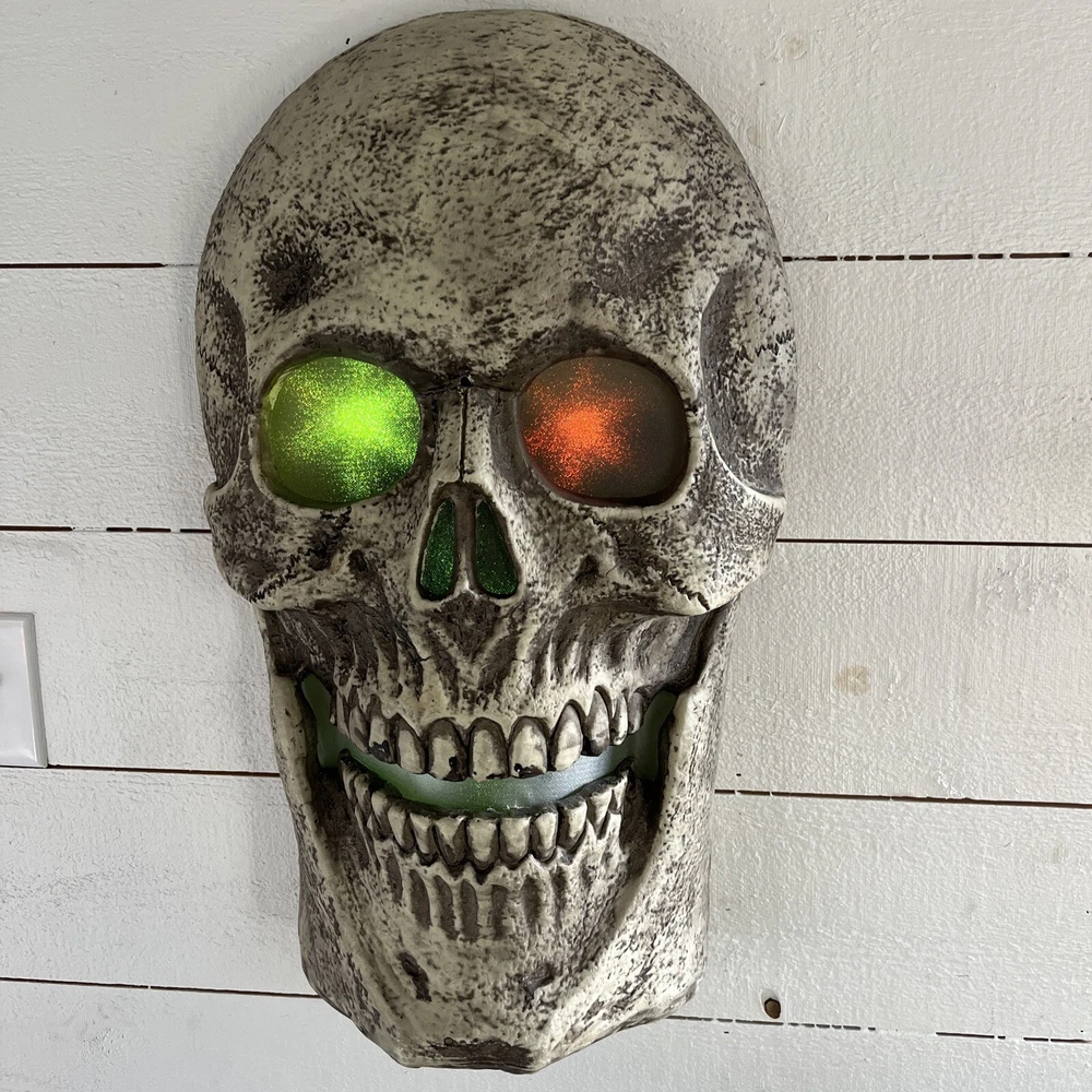 Seasonal Visions Spooky sounds animated color changing Halloween skull blowmold. Stands on ground or hangs on wall or door.
