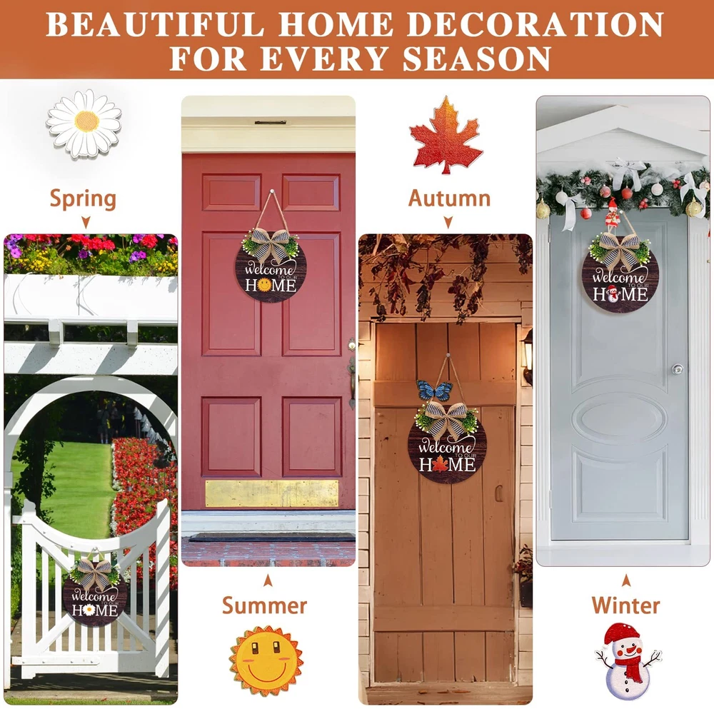 Seasonal Welcome Sign Round Wood Wreath Front Door Decor Interchangeable