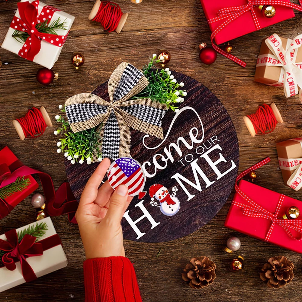 Interchangeable Seasonal Welcome Sign Front Door Decorations, Round Wood Wreath for Outdoor, Farmhouse, Porch Perfect for New Home Housewarming Gift, Valentine's Day, Easter, Christmas Home Decor MORE BENEFITS Upgraded Design: The classic plaid bow together with the greenery of our welcome sign are firmly stapled on the rustic round wood which prevent wreath from easily falling off by wind,Upgraded with 3D engraving "HOME" design makes this welcome interchangeable sign unique and pretty, Replaced the “O” poisition magnetic with velcro tape to avoids rusting for years to come High-Quality Material: Made of rustic round sturdy solid wood (not cheap MDF) which makes the whole welcome sign not easy swelling by absorting moisture in raining days, texture can withstand warping or rotting even when exposed outside for long last using Warm Farmhouse Porch Hanging Decor: 16 style of cute seasonal signs for you to interchange the “O” in “HOME" sign which forms different signs for different seasons to welcome your family or guests with spefic seasonal atmosphere Size: Diameter of this round interchangeable welcome sign is 12 x 12 inches(30 x 30cm),and thickness in 0.27 inches(7mm). Be a great idea or gift for Valentine's Day,Easter Day,seasonal door decorations,Harvest Day, Halloween, Christmas,Thanksgiving, Housewarming Gifts for new home,graduation parties,churches,and so on. Come with home decor or farmhouse country themed decor,giving this hanging ornagment triguring the right atmosphere with different interchaneable signs Awesome Decoration for Front Door: Fitted with sturdy burlap rope and classic artificial greenery,easy to use hanging on for decorations on front door or garden gate,or for festivals like Easter Day,St.Patrick’s Days,adding a warm and joyful festival atmosphere and express your warm welcome greetings SHIPPING We work diligently to ensure your package arrives as quickly as possible. Please understand that factors such as weather, high postal traffic, and carrier performance are beyond our control. We offer free shipping to the lower 48 states and most items ship within 3 business days of payment M-F excluding federal holidays, often sooner. Unfortunately, we cannot ship to P.O. Boxes—please provide a physical address for delivery. International Shipping Items shipped internationally may be subject to customs processing, depending on the item’s customs value. As the buyer, please be aware of potential: Delays due to customs inspections Import duties and taxes required by your country which are paid by you the buyer, not the seller Brokerage fees due at the point of delivery For more information, please contact your country’s customs office, or visit eBay’s page on international trade. PAYMENT All payments are handled through eBay managed payments. if you have a question related to payments accepted, you must reach out directly to eBay for further assistance. If you are not 100% satisfied with your purchase, you can return the product and get a full refund. Returns are accepted up to 30 days from the date of delivery. Any product you return must be in the same condition you received it and in the original packaging. Perishable Foods Please note all perishable foods are always packaged in a new sturdy corrugated box and are delivered to our customers before the expiration date.