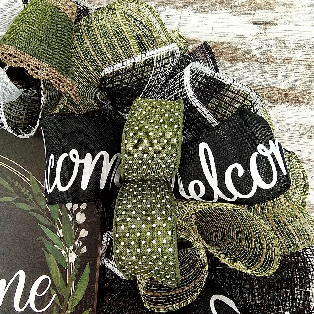 This welcome wreath will make a wonderful addition to your indoor or outdoor home décor. Use it for your own decor, or a gift for someone special. Thank you so much for visiting my shop and for considering pieces that allow my passion to make your home even more beautiful. Please message me with any questions before purchasing. This wreath measures approximately 24 inches round and approximately 5" deep This wreath is ready to ship and is made with black, jute and white mesh and accented with coordinating ribbons to showcase the wooden Welcome sign in the center (that is removable) Want something more custom or have questions? Send me a message...the backbone of my business is custom creations! Purchase with confidence in a seller with excellent reviews and over 15,000 sales between all selling venues. Indoor and outdoor pieces but my wreaths do appreciate a little shelter from the elements to stay in pristine condition.