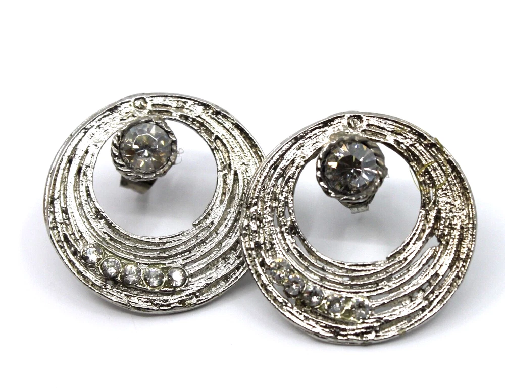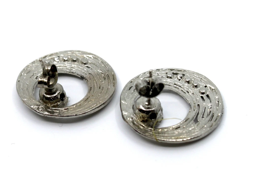 Seasonal Whispers Silver Circle Stud Earrings Swarovski Opal Crystals #2 Swarovski crystals Silver tone Total Size is 1"in diameter Stainless steel base metal Hand made in New York, New York Tagged by Seasonal Whispers #01020