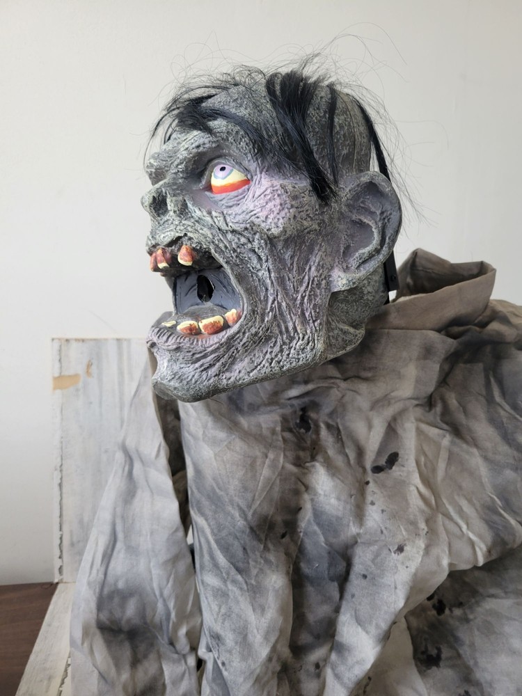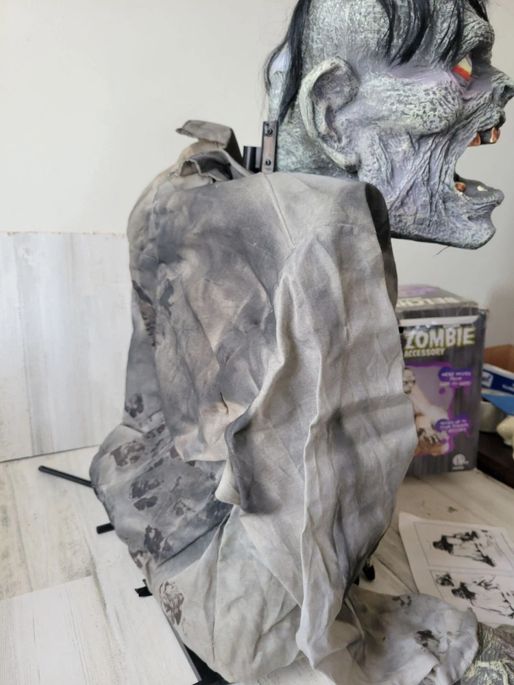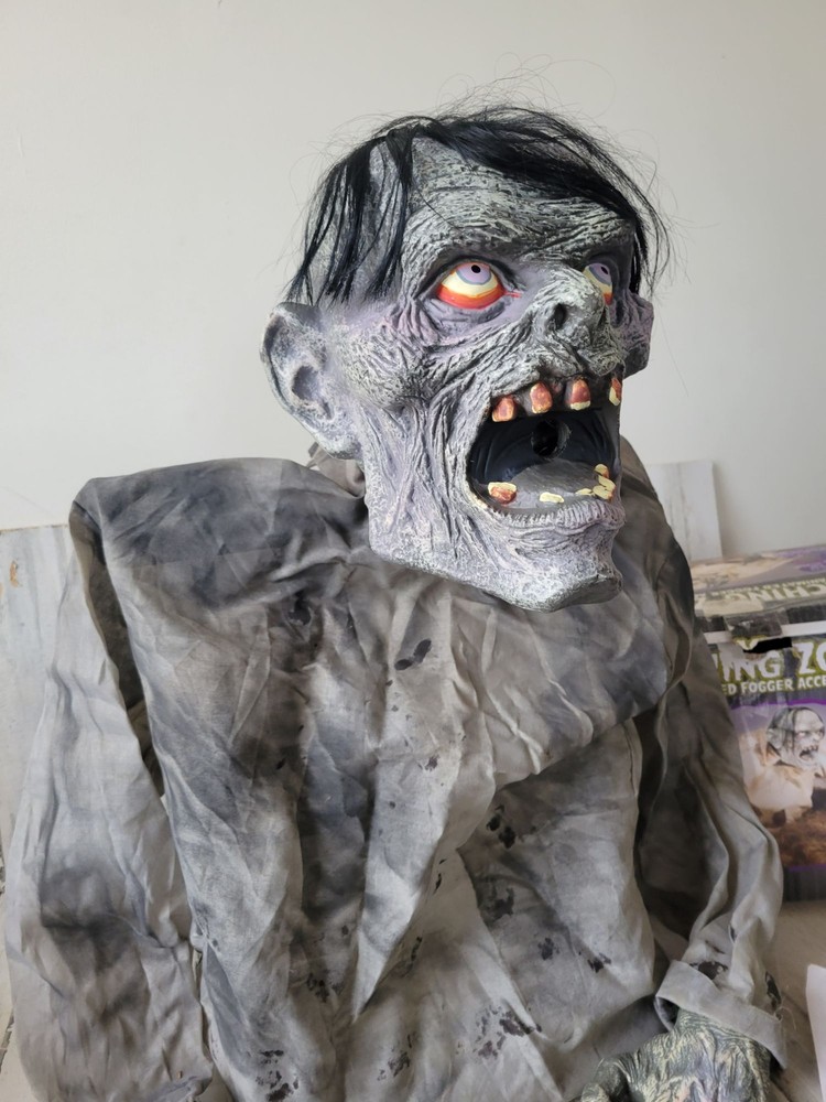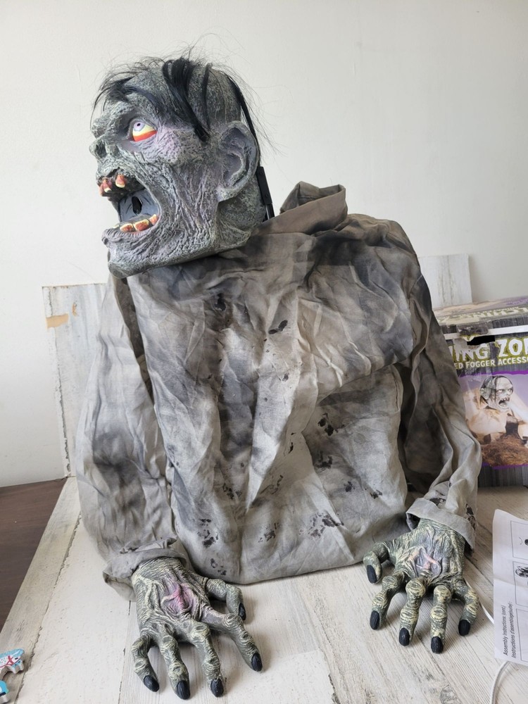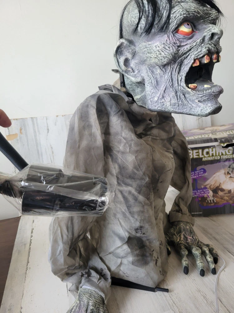 Seasonal belching zombie fogger animated Halloween prop groundbreaker decor like new condition except for one plastic base was broken and retaped, still working as it should functionally, no other problems, head moves to the right side, not sure if it's supposed to go to the left too, but not moving to the left, seems to be operating correctly though, significant damage on box, no sound, animated prop only Non smoking home We are a family run business with 3 little girls! We are building our own brand with them and hopefully you will join our journey! Thank you so much and have a wonderful day! Exclusive Elegance